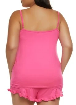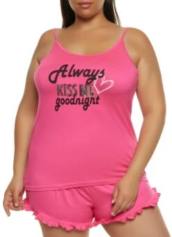 Plus Size Kiss Me Goodnight Pajama Cami and Shorts with Robe – FUCHSIA