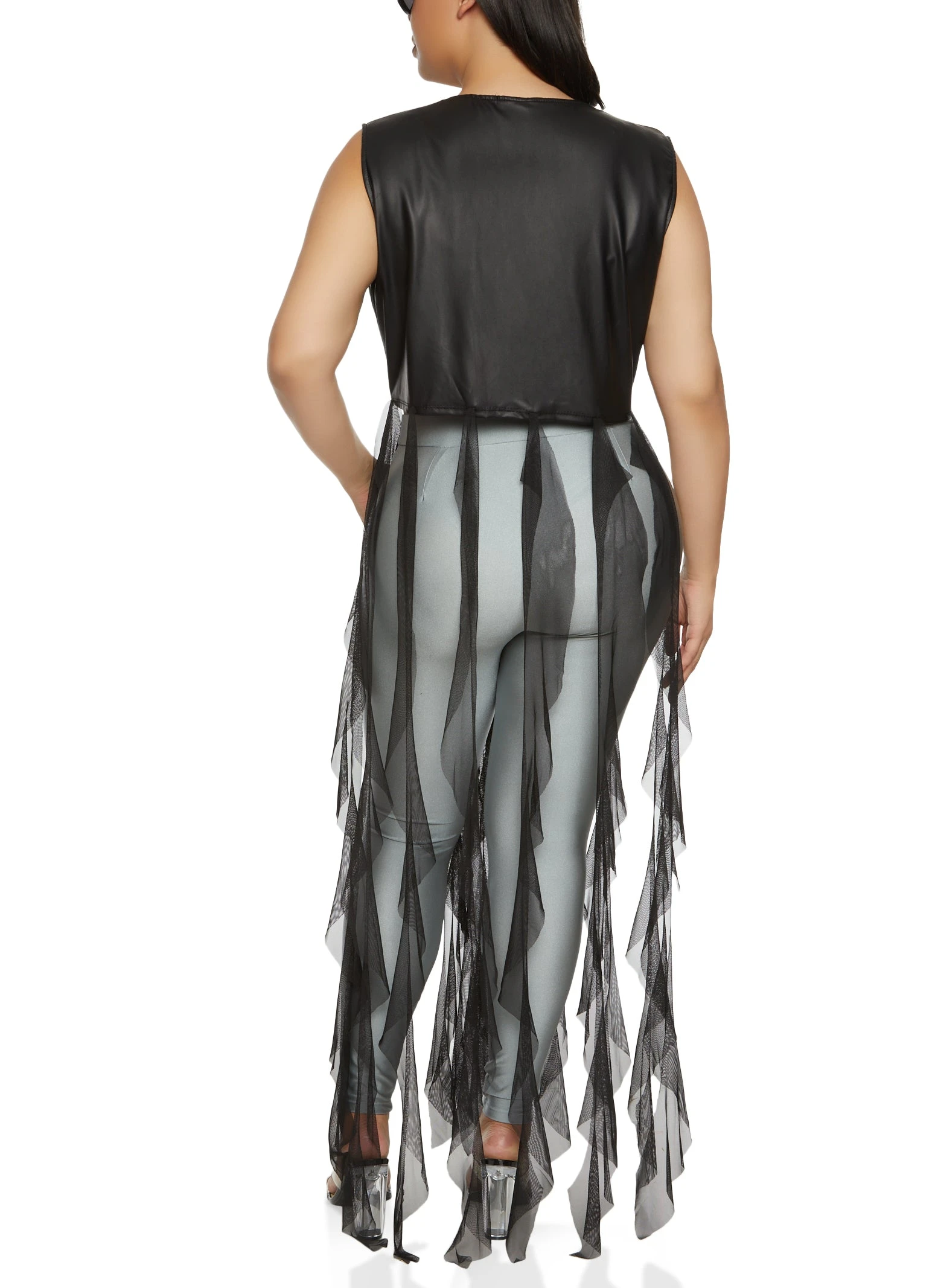 Plus Size Leather Look Mesh Fringe Vest – BLACK