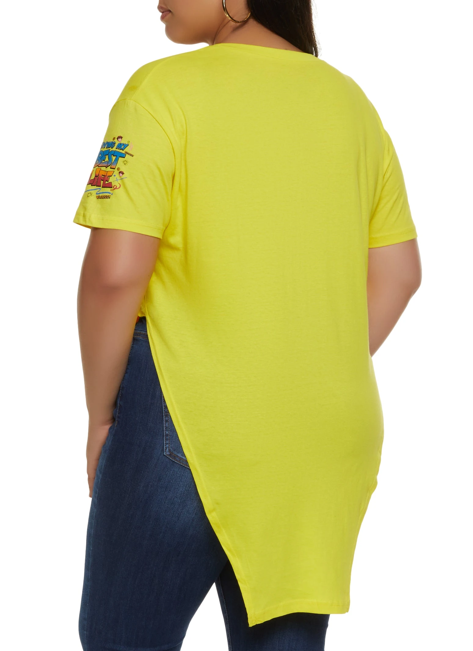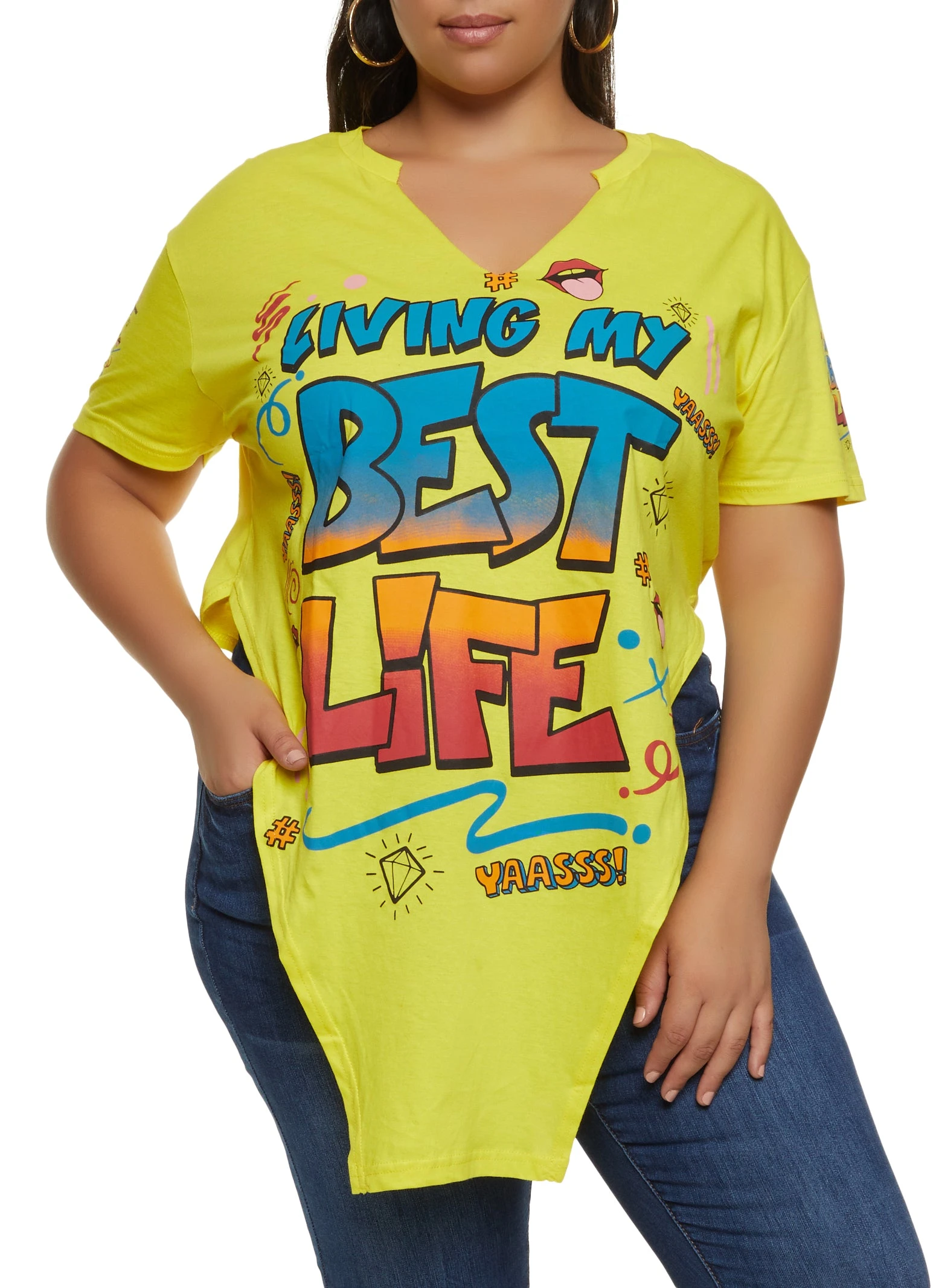 Plus Size Living My Best Life Hanky Hem Graphic Tee – YELLOW
