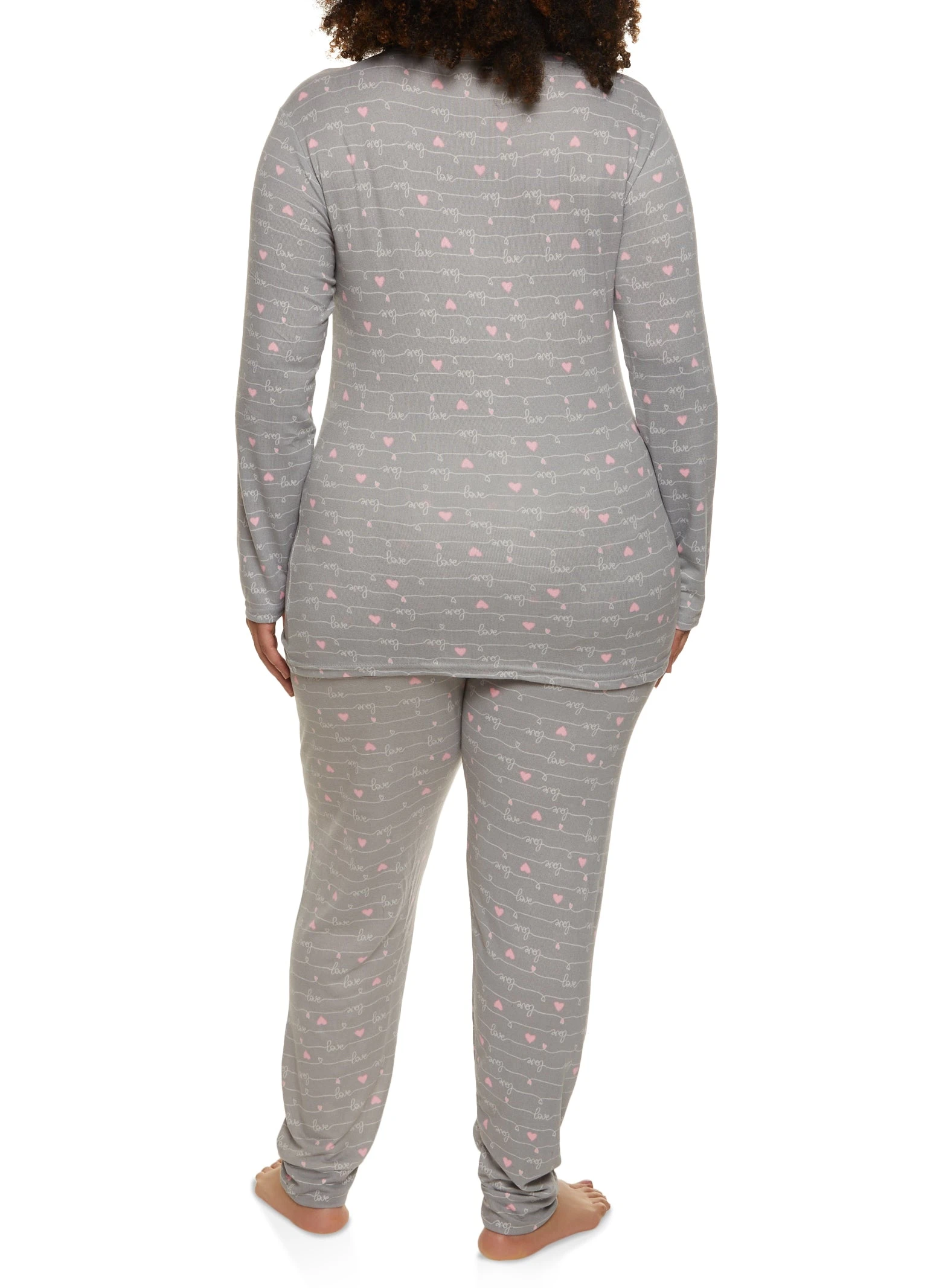 Plus Size Love Heart Print Pajama Top and Pants – GRAY
