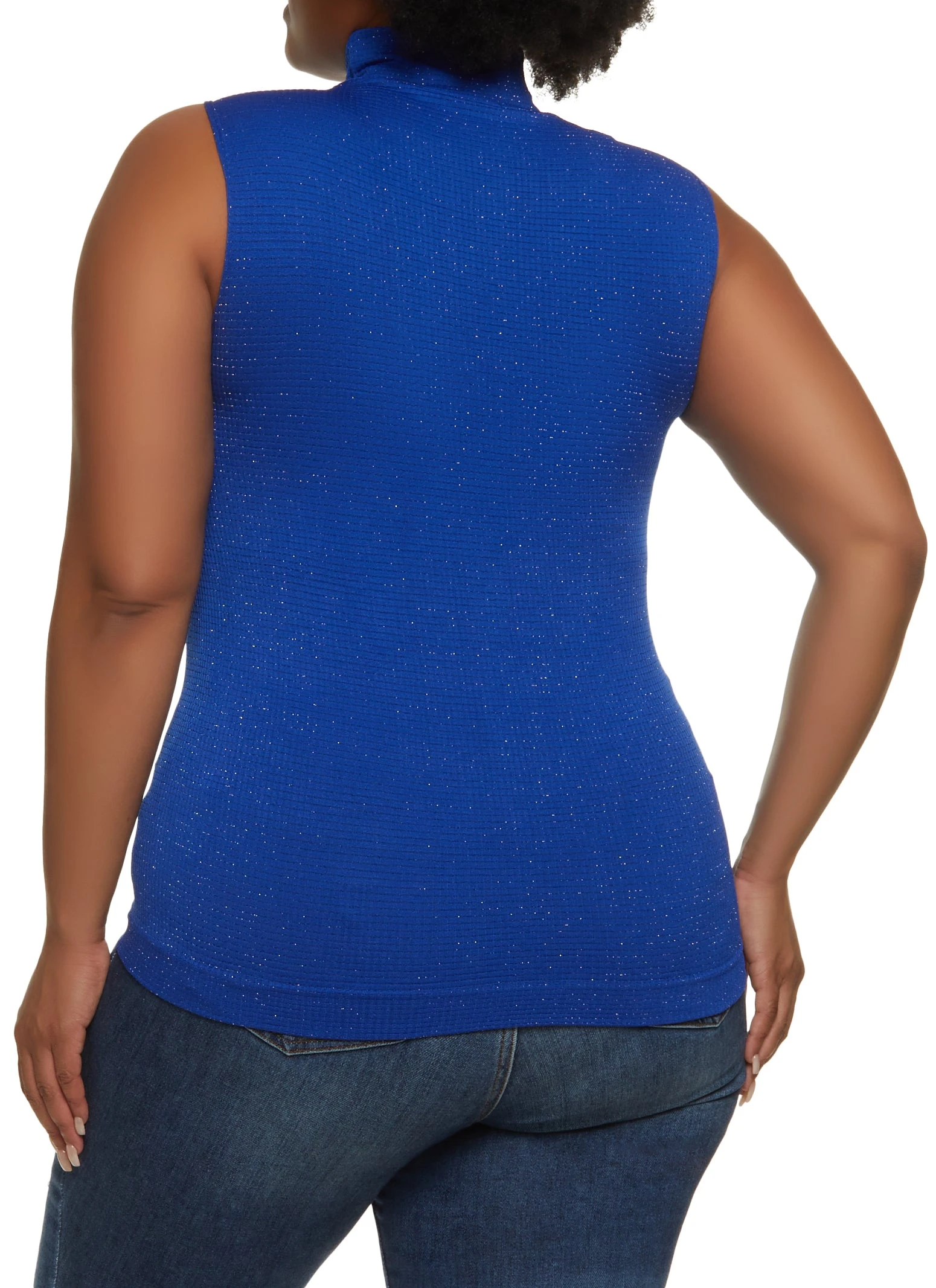 Plus Size Lurex Seamless Mock Neck Tank Top – ROYAL BLUE