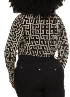 Plus Size Maze Print Half Zip Bodysuit – MOCHA