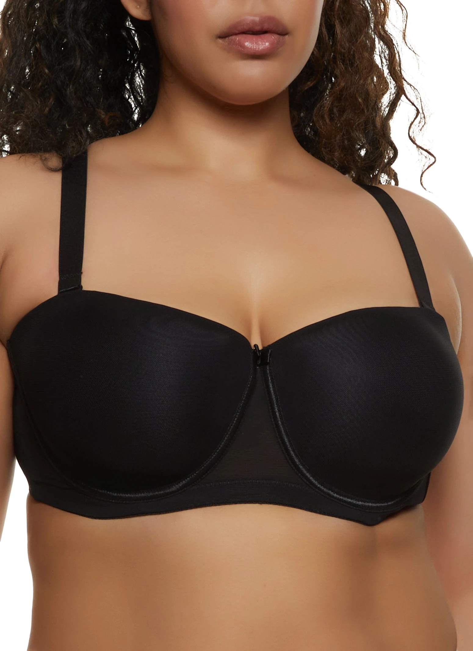 Plus Size Mesh Convertible Balconette Bra – BLACK