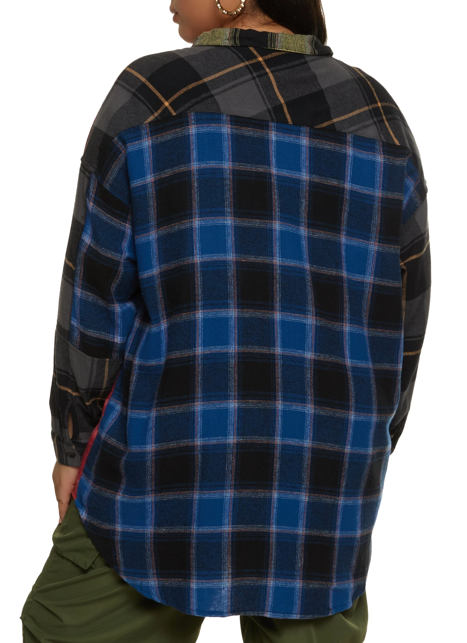 Plus Size Mixed Plaid Flannel Shirt – BLUE