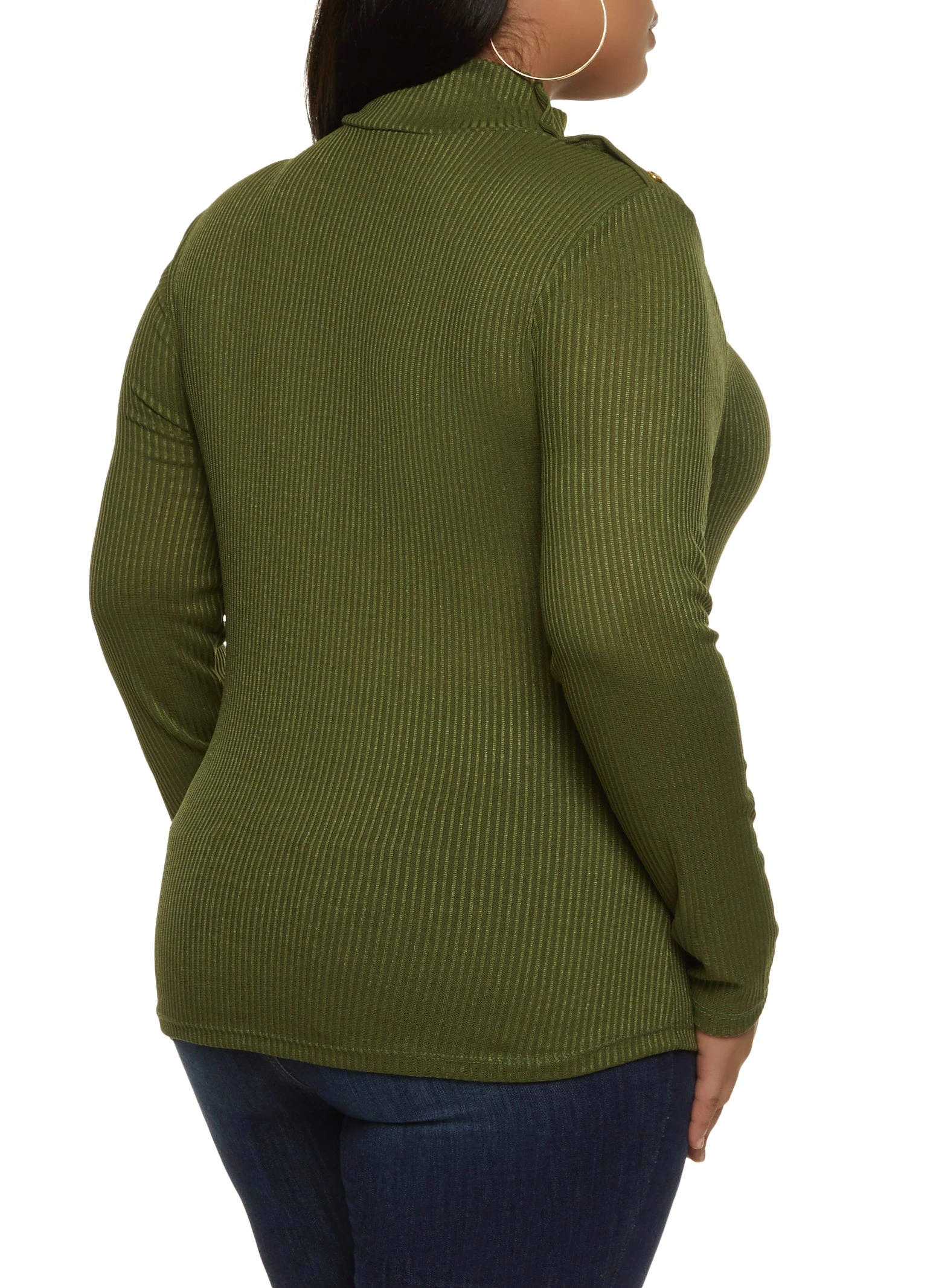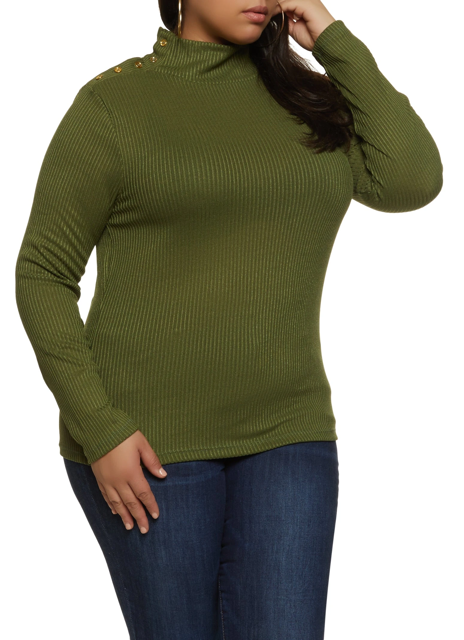 Plus Size Mock Neck Faux Button Top – OLIVE