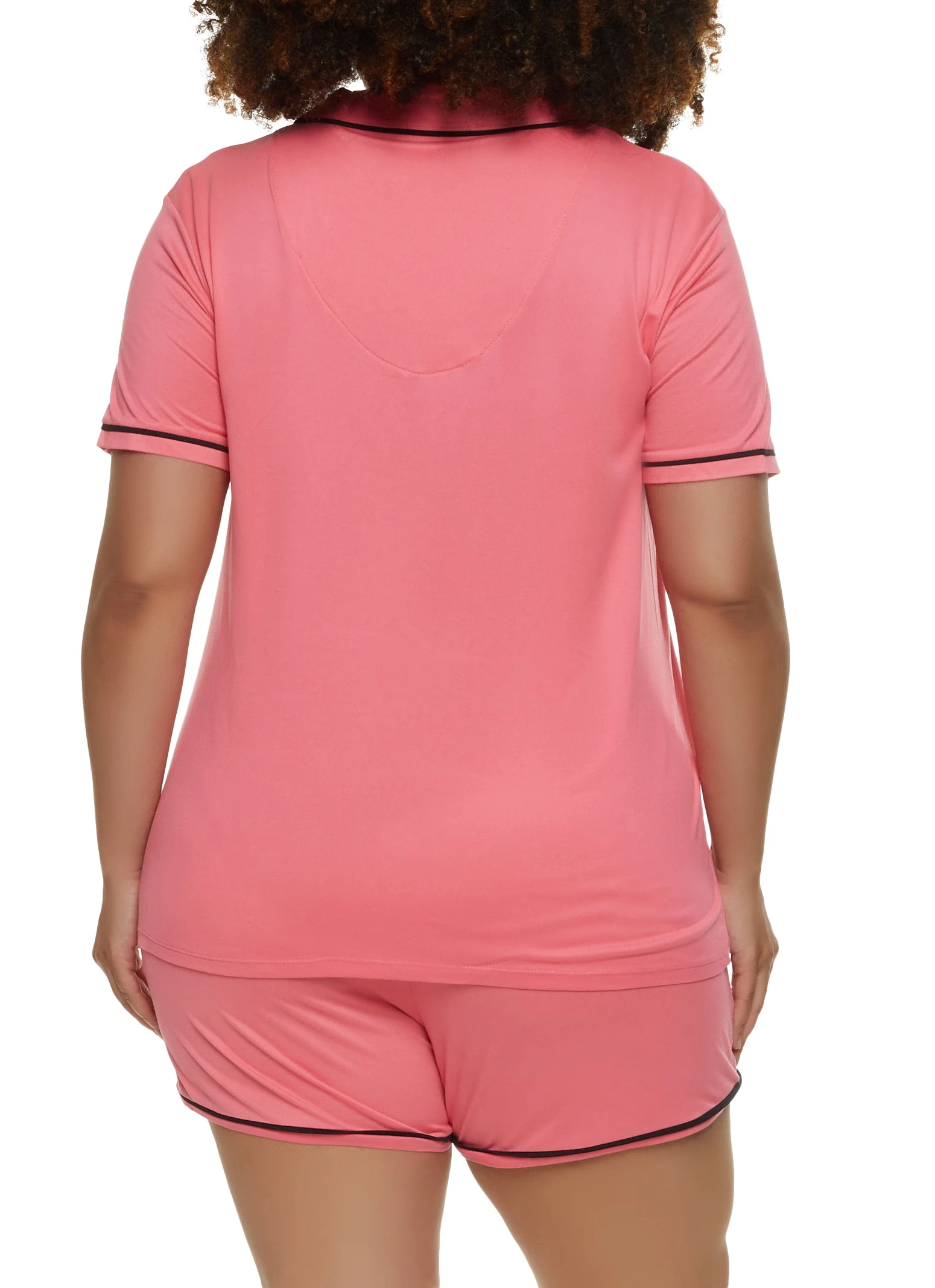 Plus Size Nap Queen Pajama Shirt and Shorts – PINK
