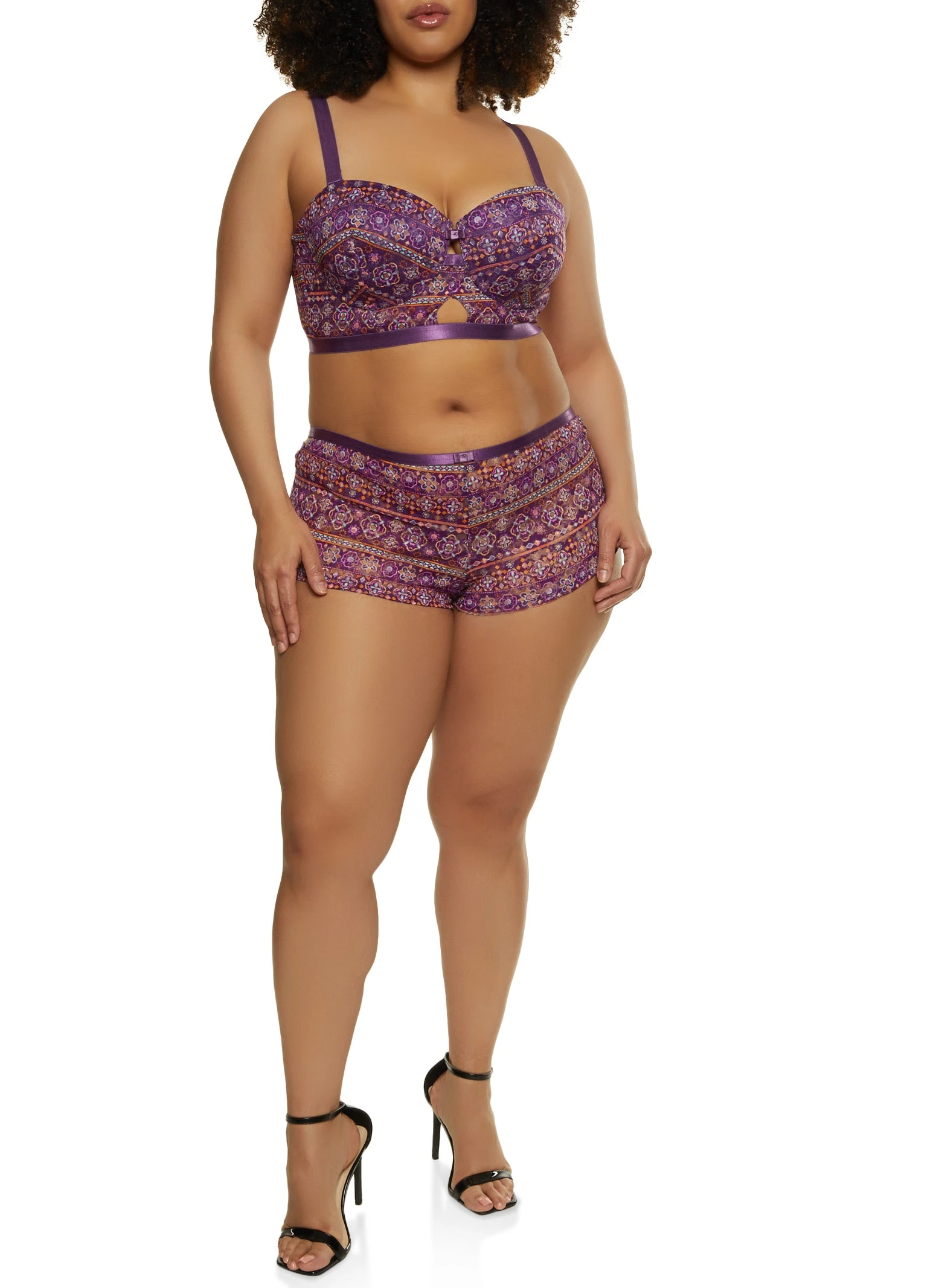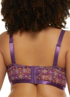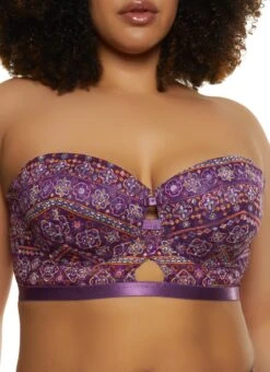 Plus Size Patterned Keyhole Lace Longline Bra | Converts to Strapless – PURPLE