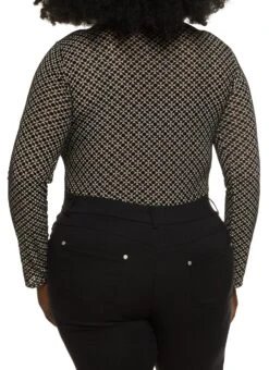 Plus Size Patterned Mock Neck Long Sleeve Bodysuit – BLACK