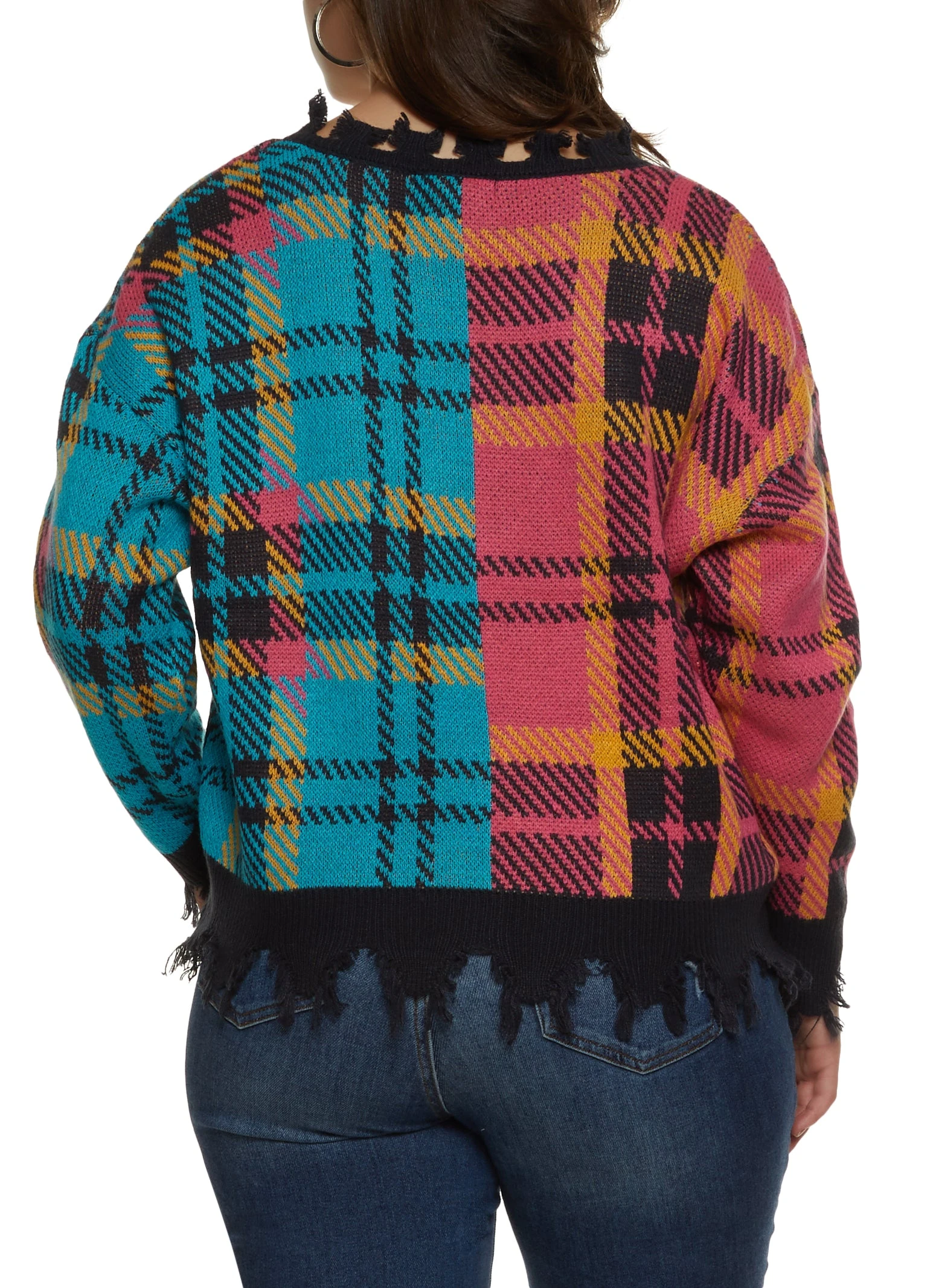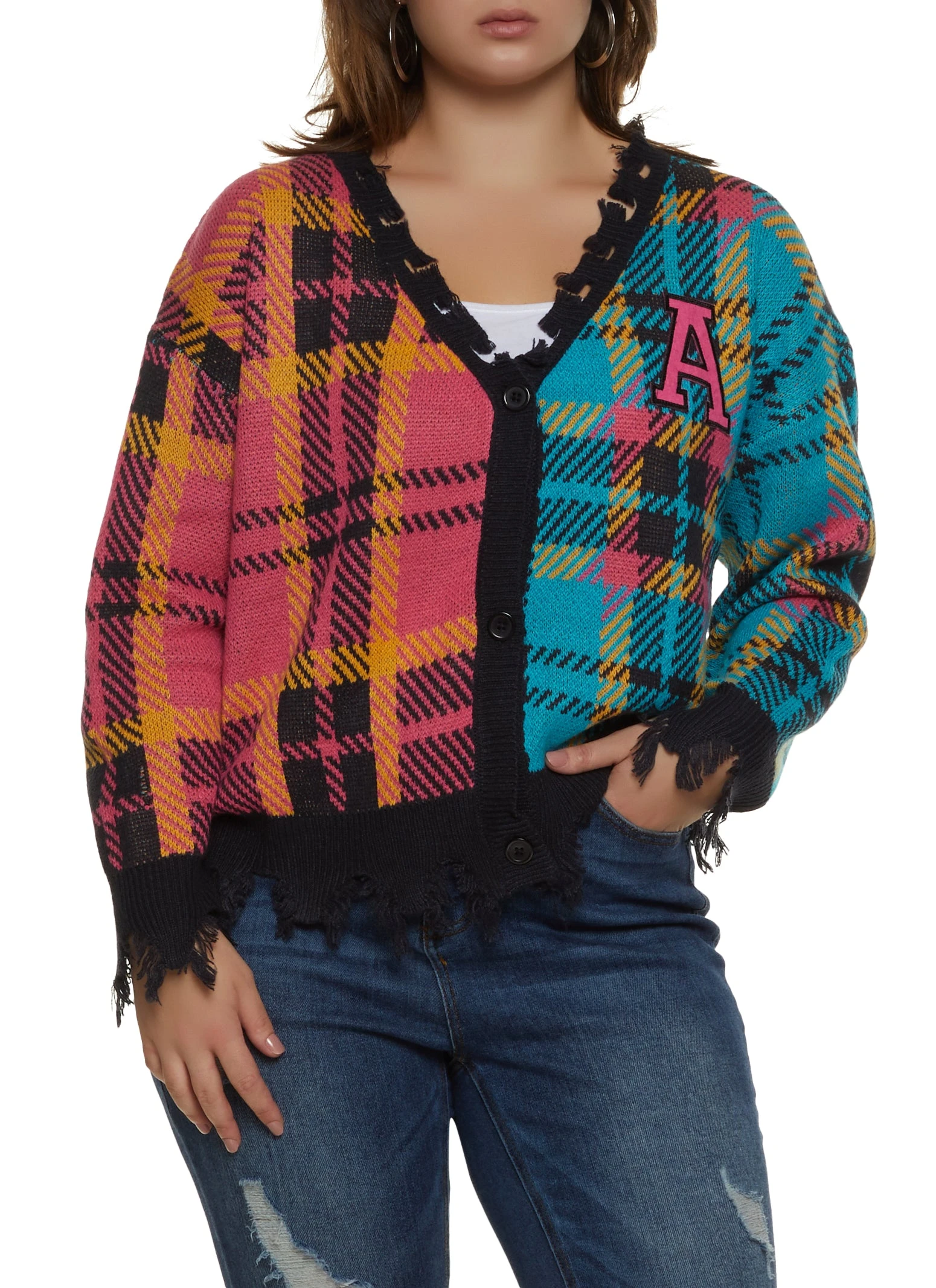 Plus Size Plaid Patch Distressed Cardigan – PINK