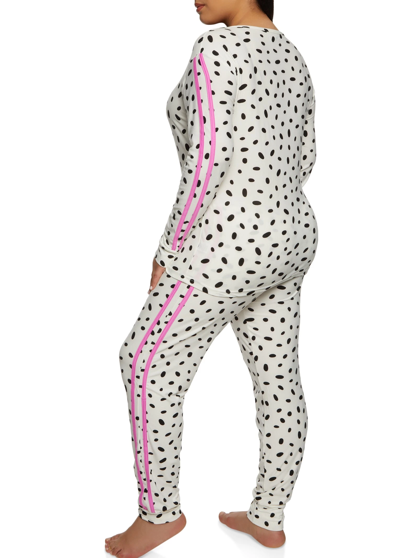 Plus Size Polka Dot Lip Pajama Top and Pants – WHITE