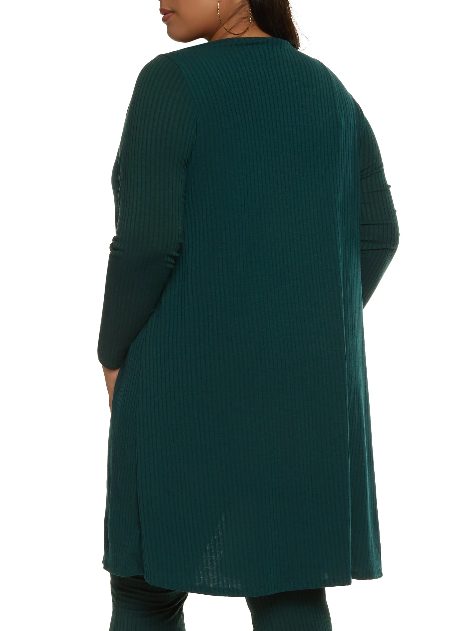 Plus Size Ribbed Knit Duster with Cami – GREEN