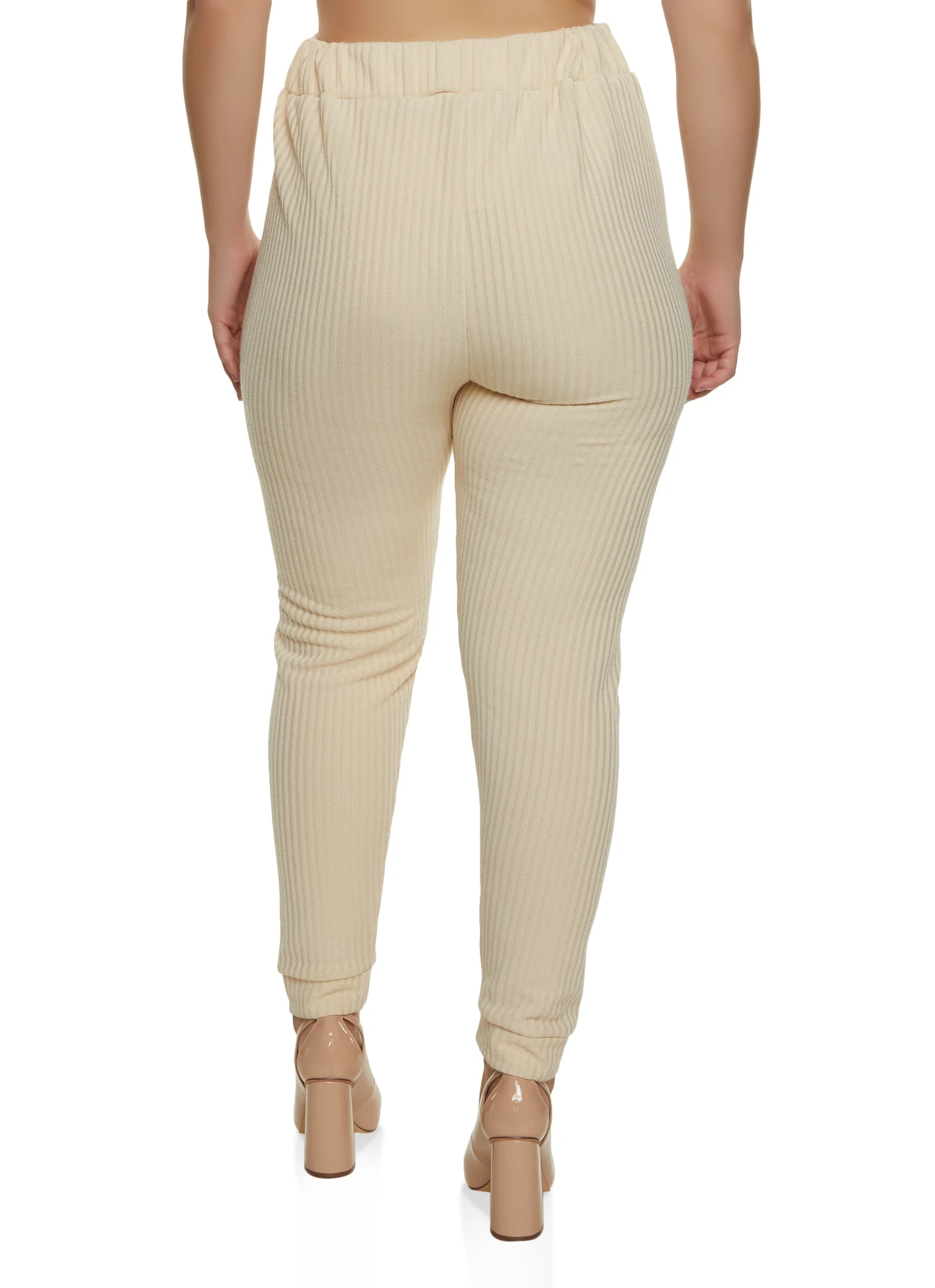 Plus Size Ribbed Knit High Waisted Leggings – CORAL