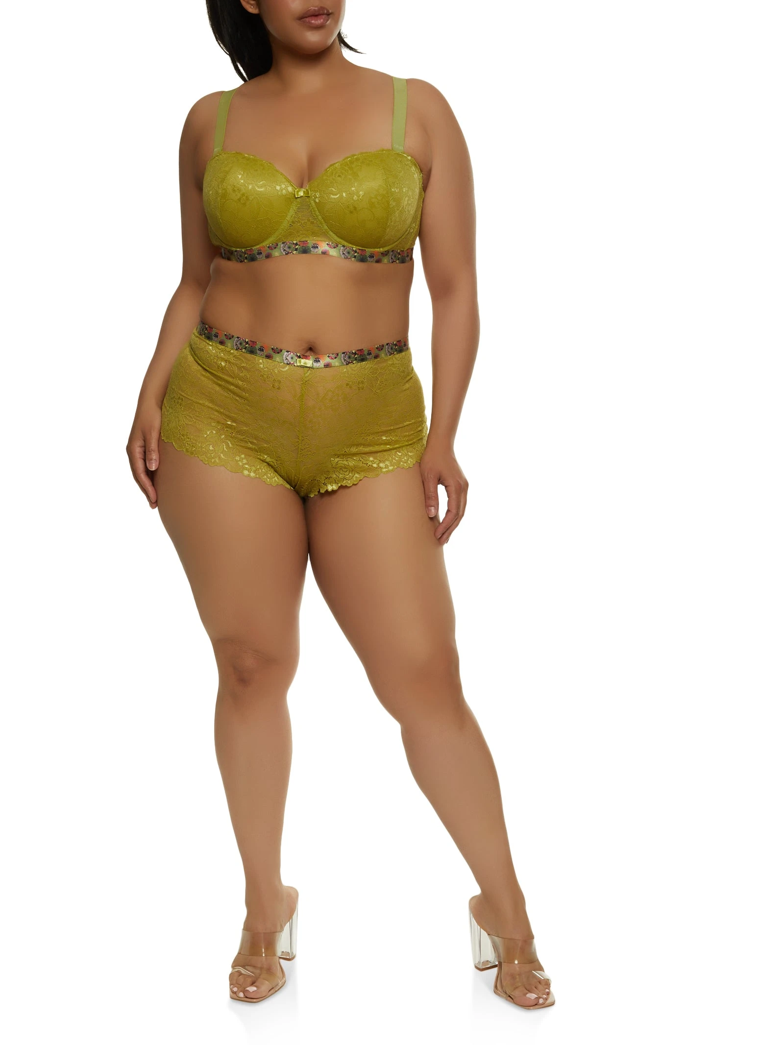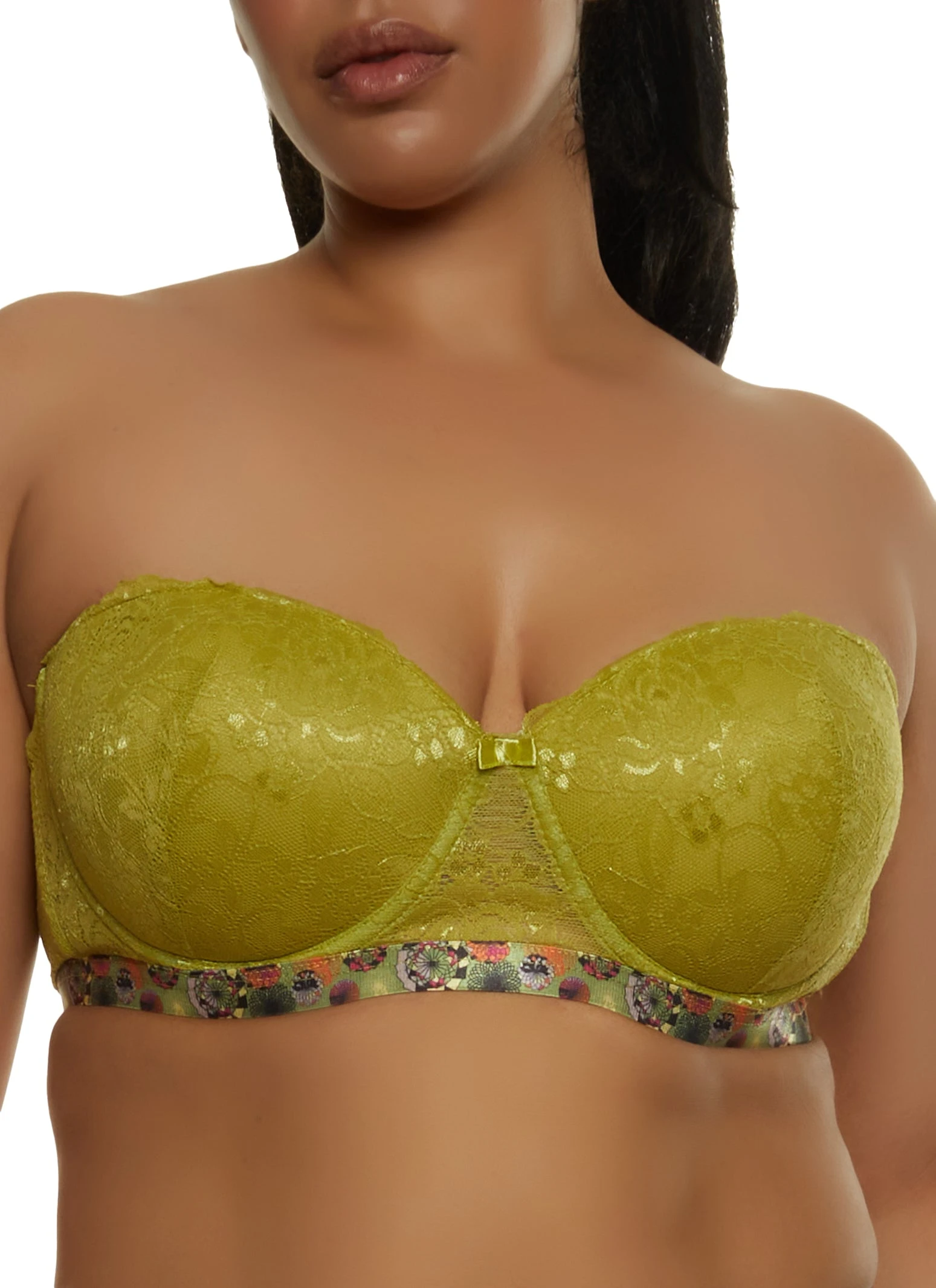 Plus Size Ribbon Trim Floral Lace Balconette Bra | Converts to Strapless – OLIVE