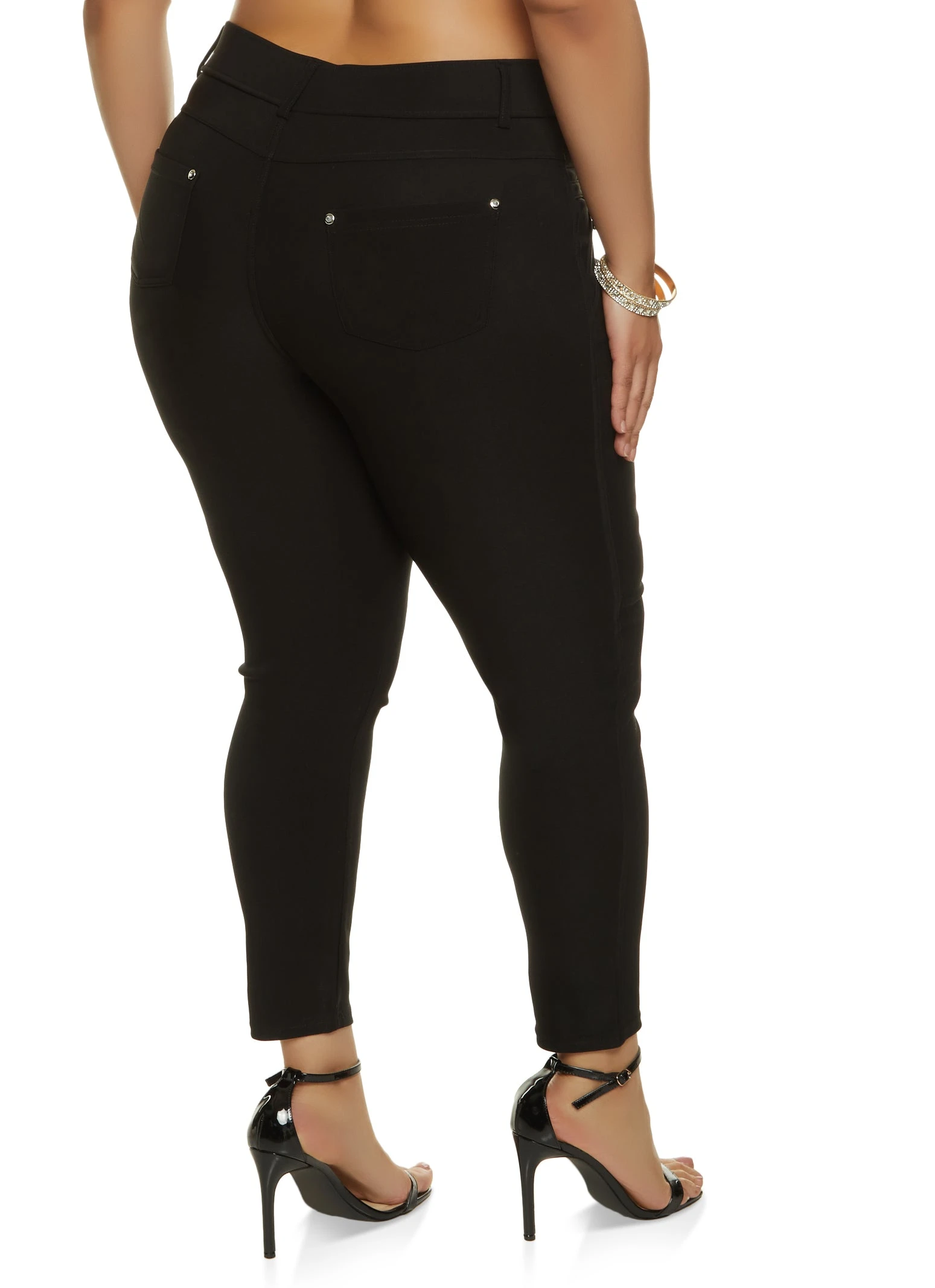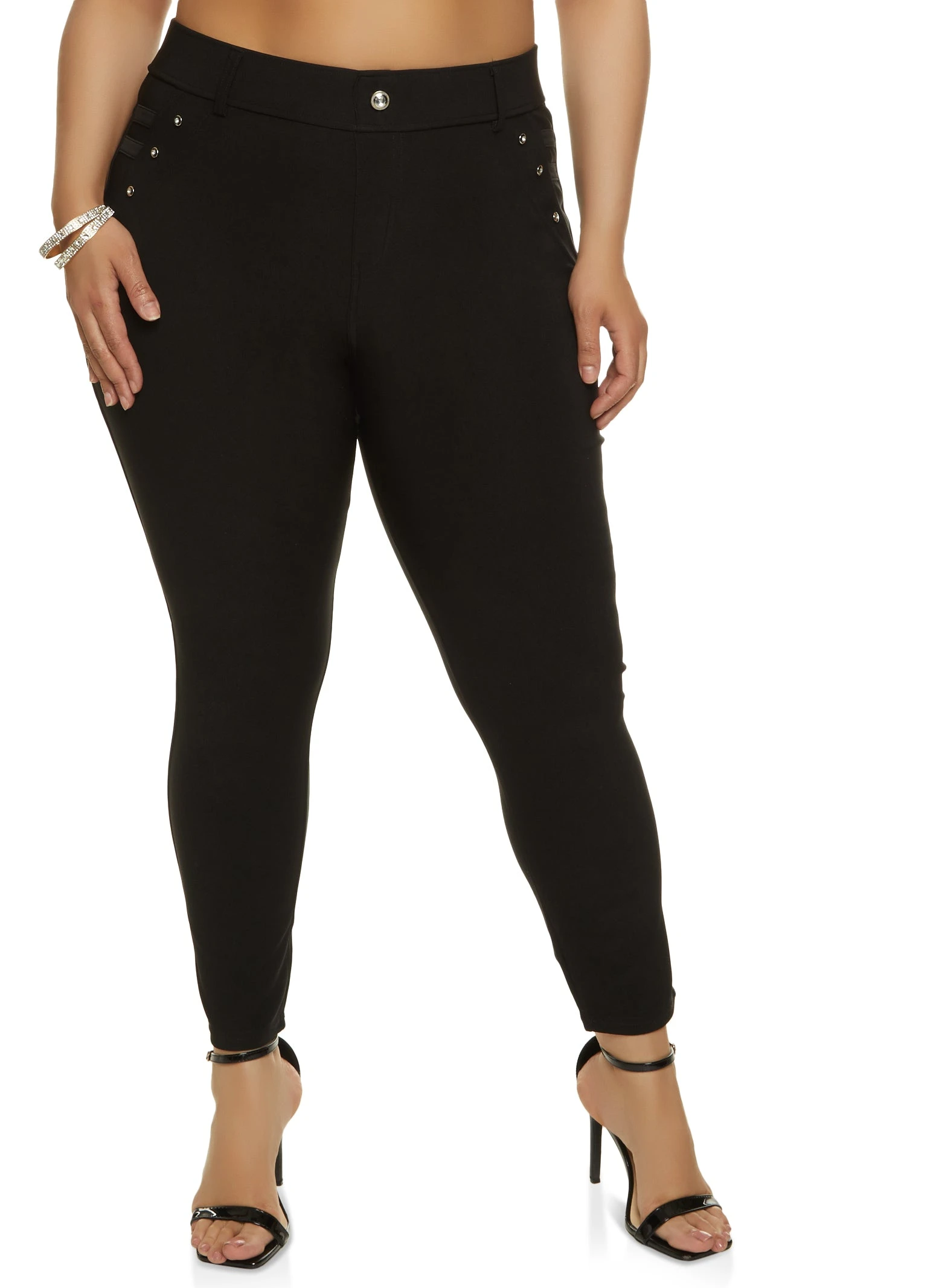 Plus Size Scuba Studded Trim Detail Pants – BLACK