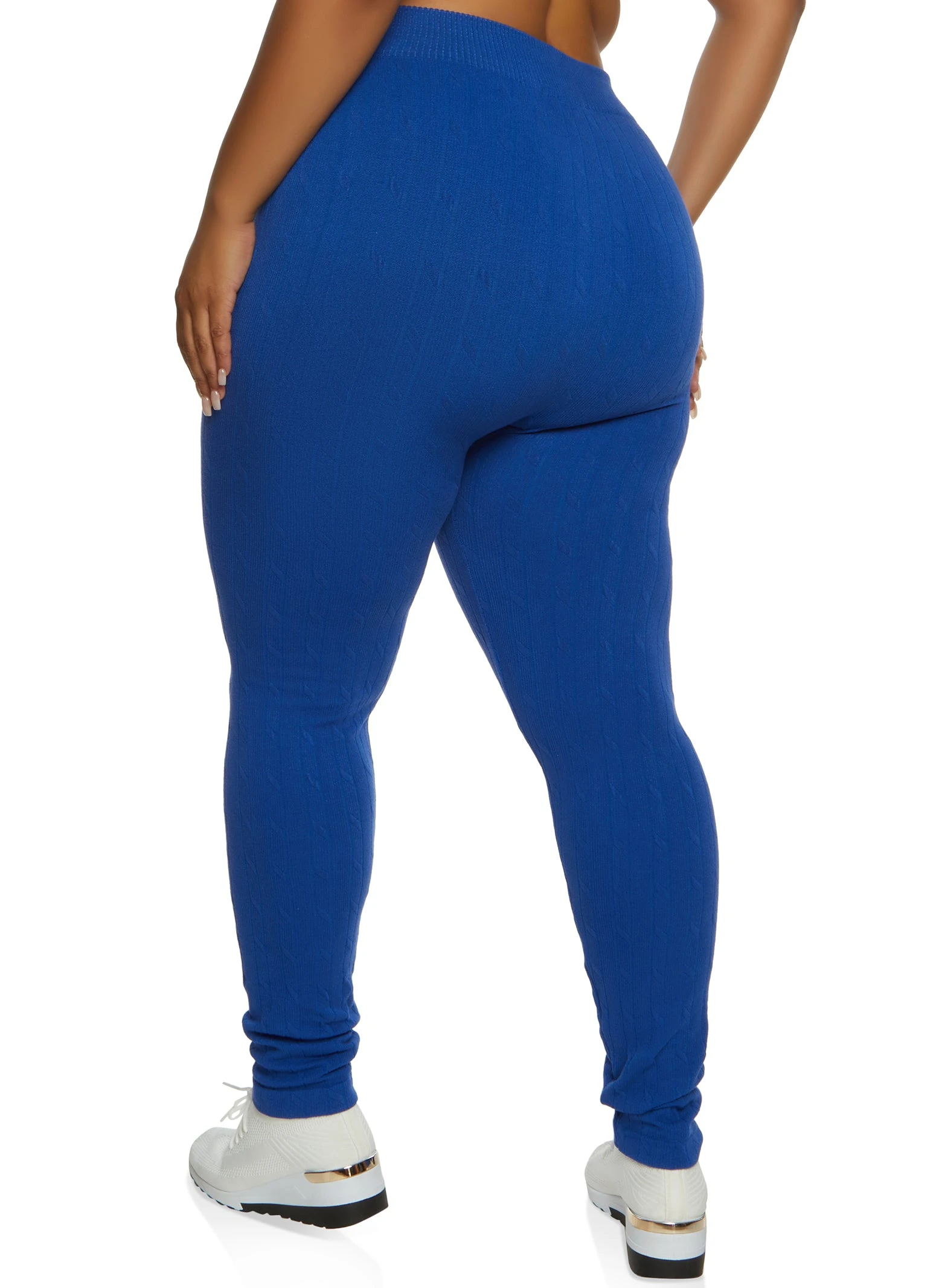 Plus Size Seamless Cable Knit Leggings – ROYAL BLUE
