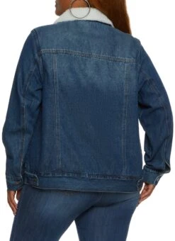 Plus Size Sherpa Lined Denim Jacket – DARK WASH