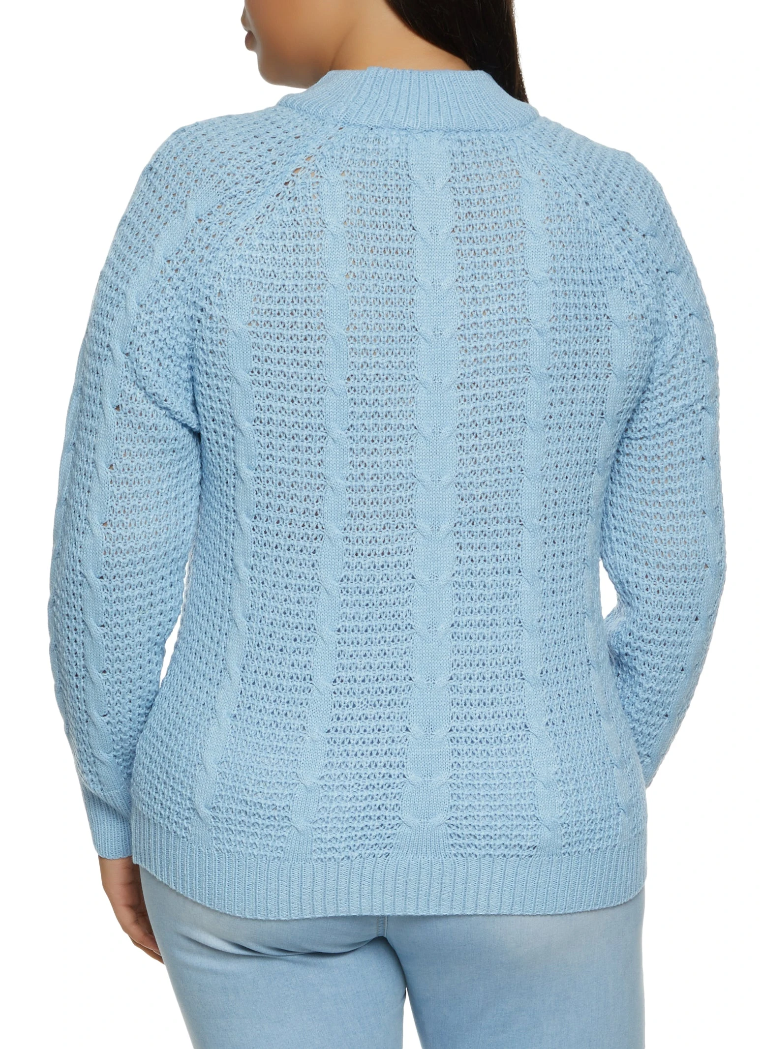 Plus Size Solid Cable Knit Pullover Sweater – BABY BLUE