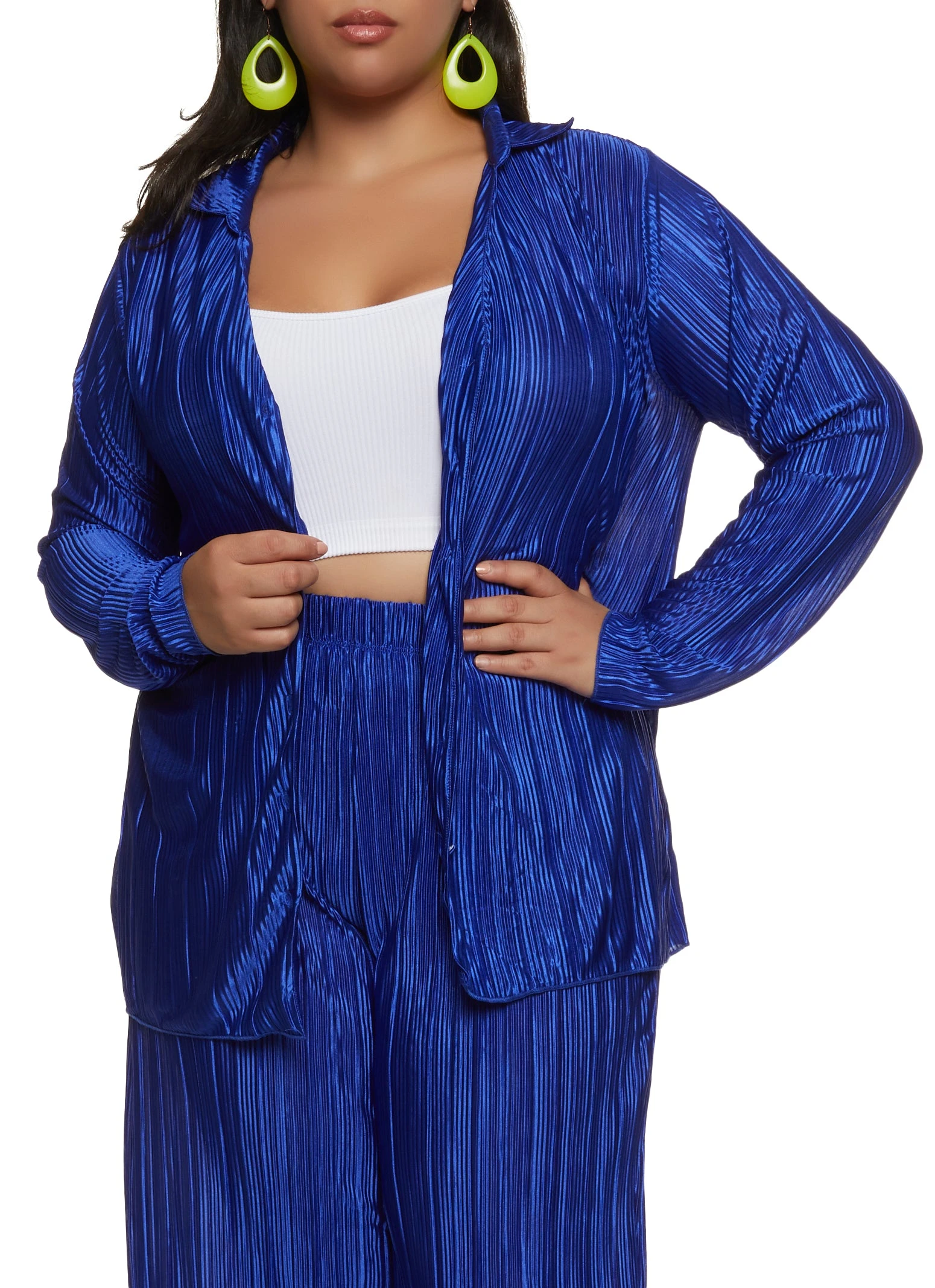 Plus Size Solid Plisse Button Front Shirt – ROYAL BLUE