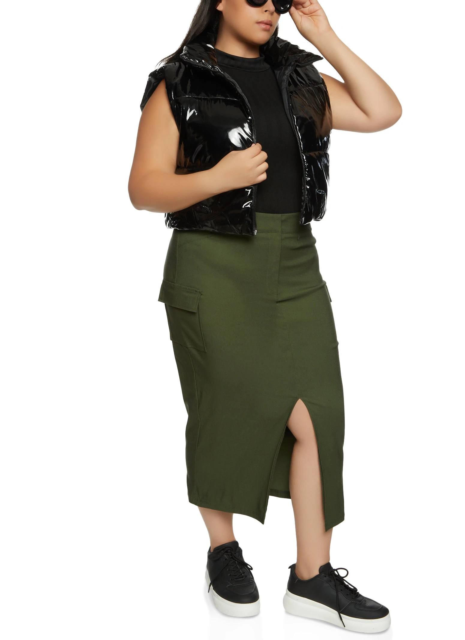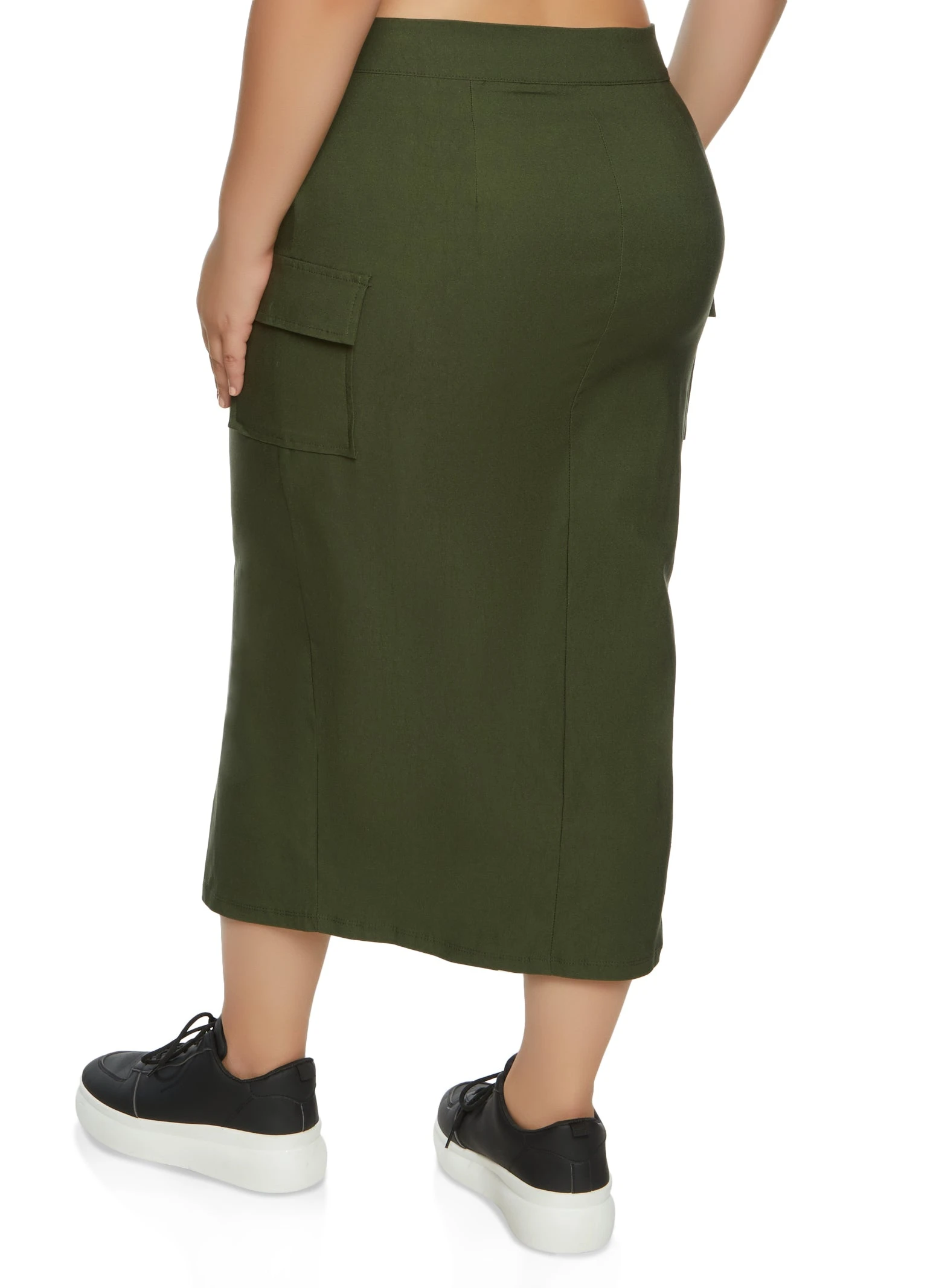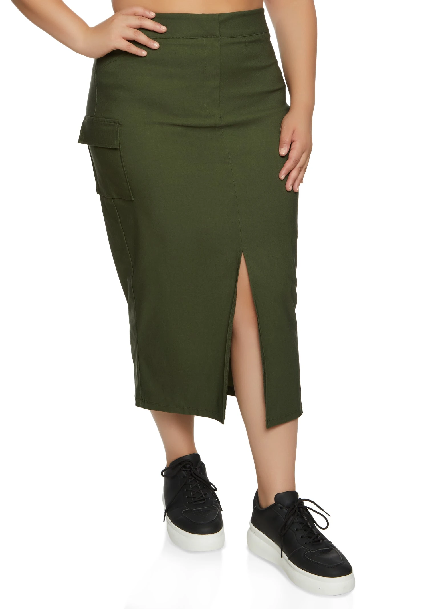 Plus Size Split Hem Cargo Pocket Maxi Skirt – OLIVE