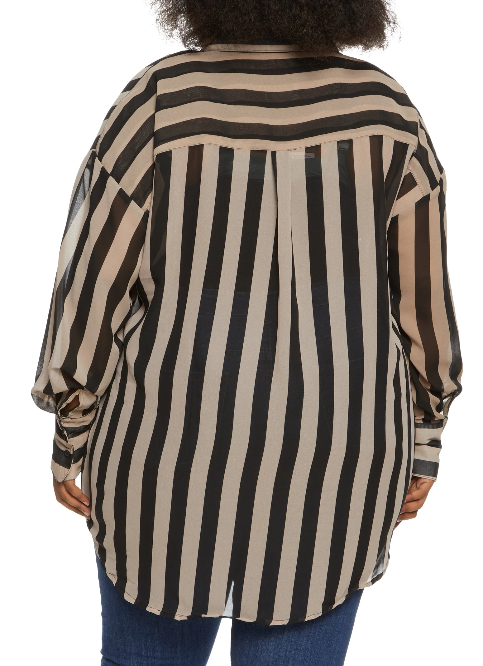 Plus Size Striped Long Sleeve Shirt – BLACK