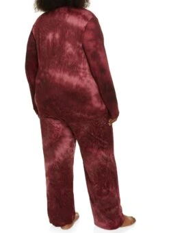 Plus Size Tie Dye Long Sleeve Pajama Shirt and Pants – BURGUNDY