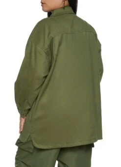 Plus Size Twill Button Front Shacket – OLIVE