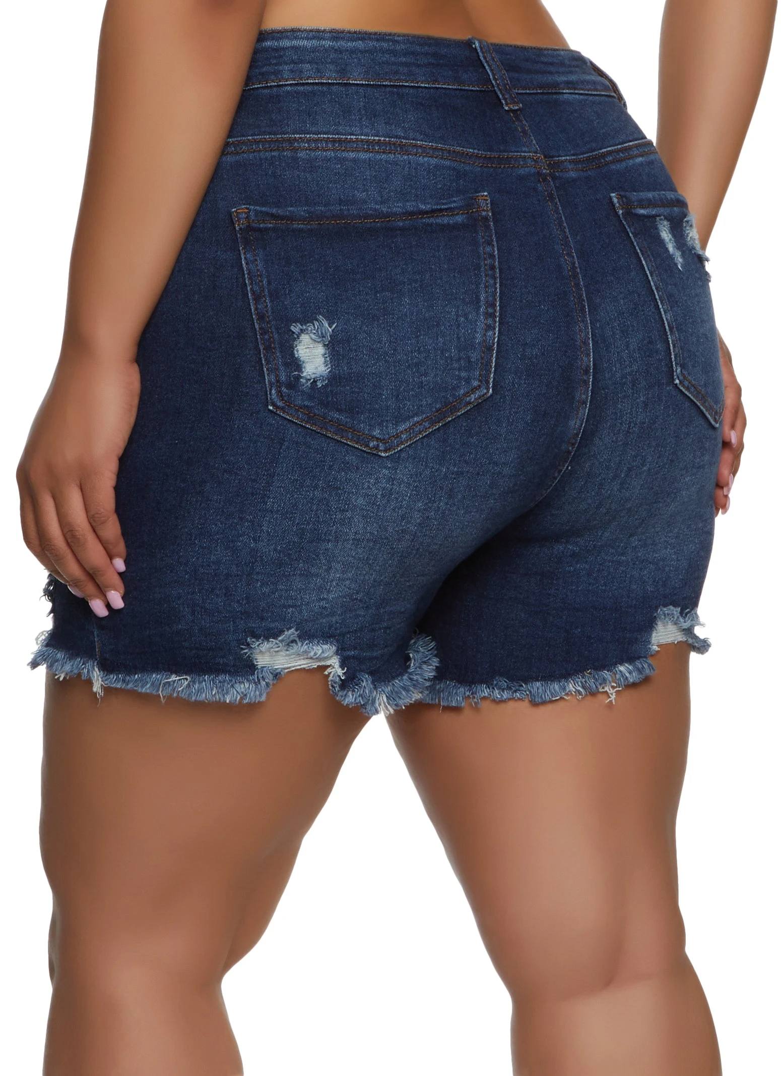 Plus Size WAX Denim Distressed Mom Shorts – DARK WASH
