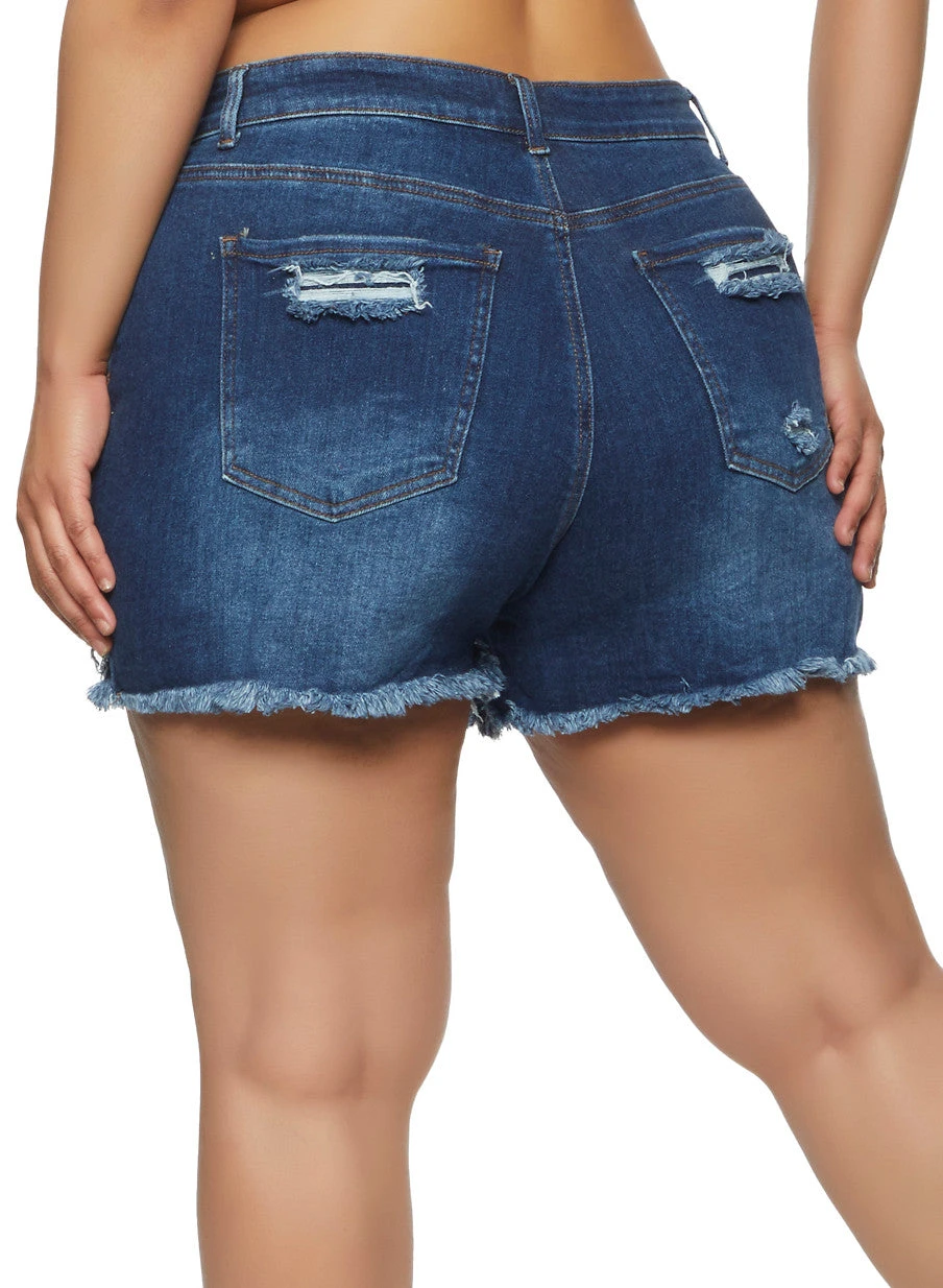 Plus Size WAX Denim Frayed Hem Shorts – DARK WASH