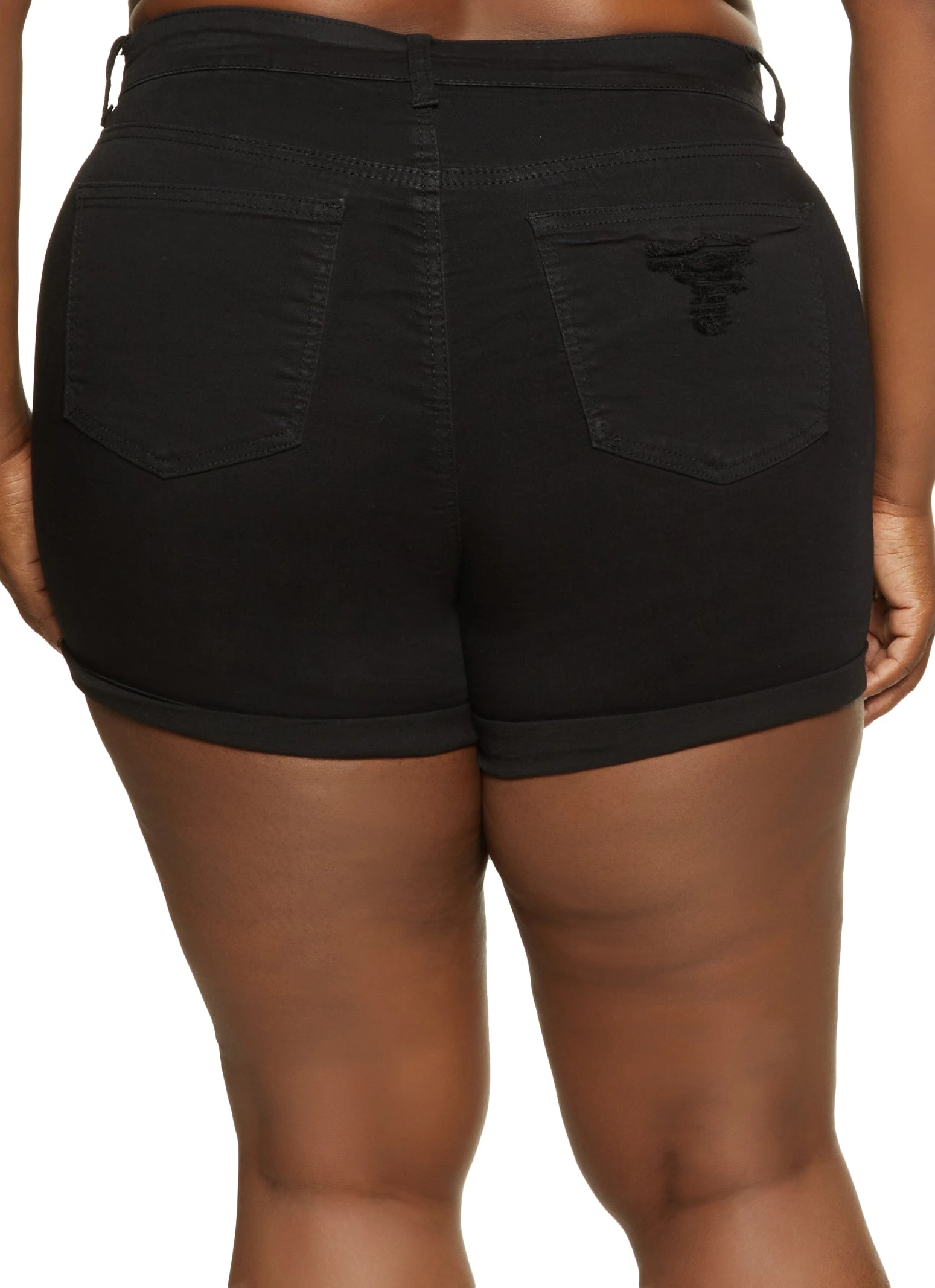 Plus Size WAX Distressed High Waist Denim Shorts – BLACK