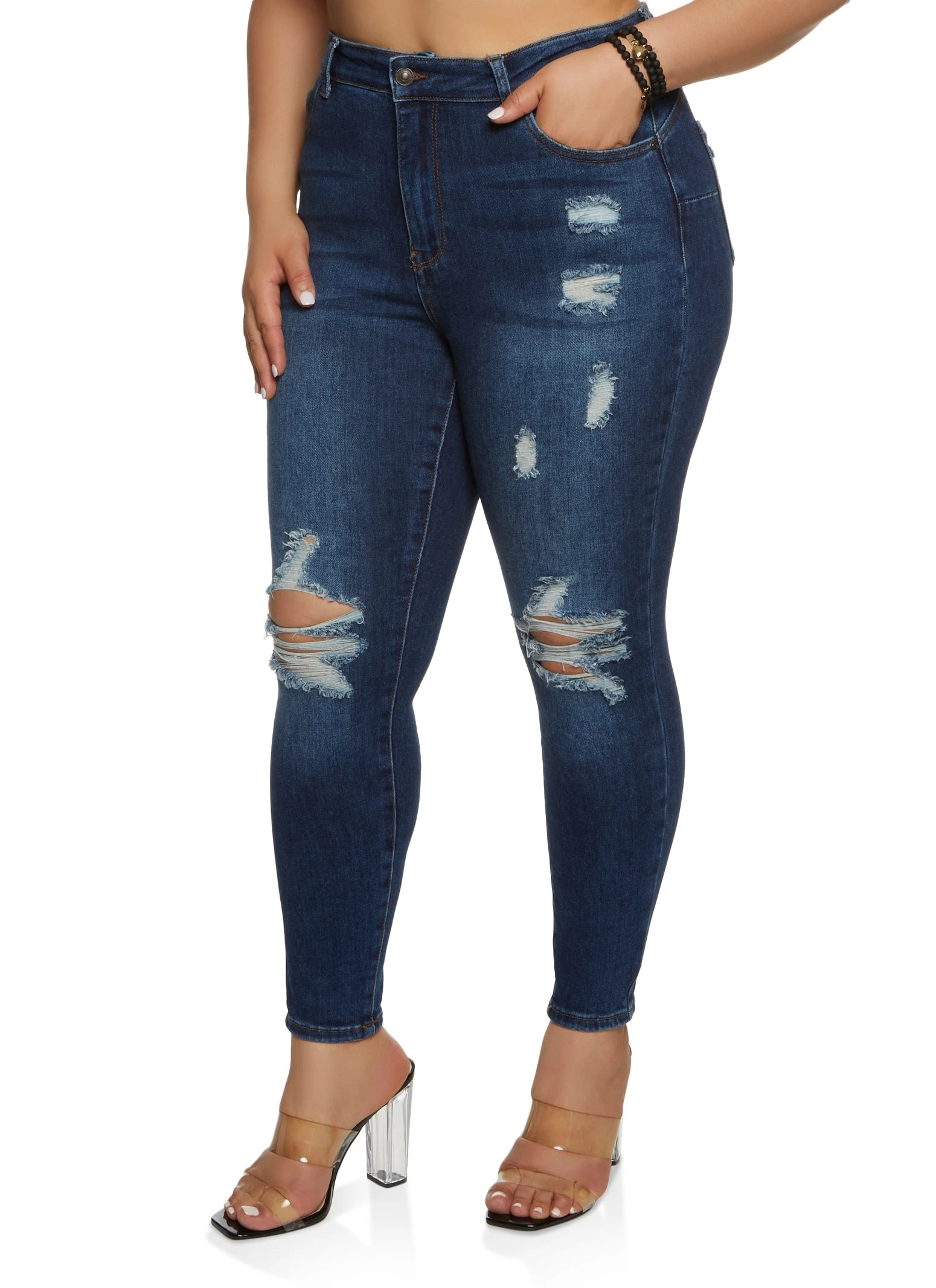 Plus Size WAX Distressed High Waisted Skinny Jeans – DARK WASH
