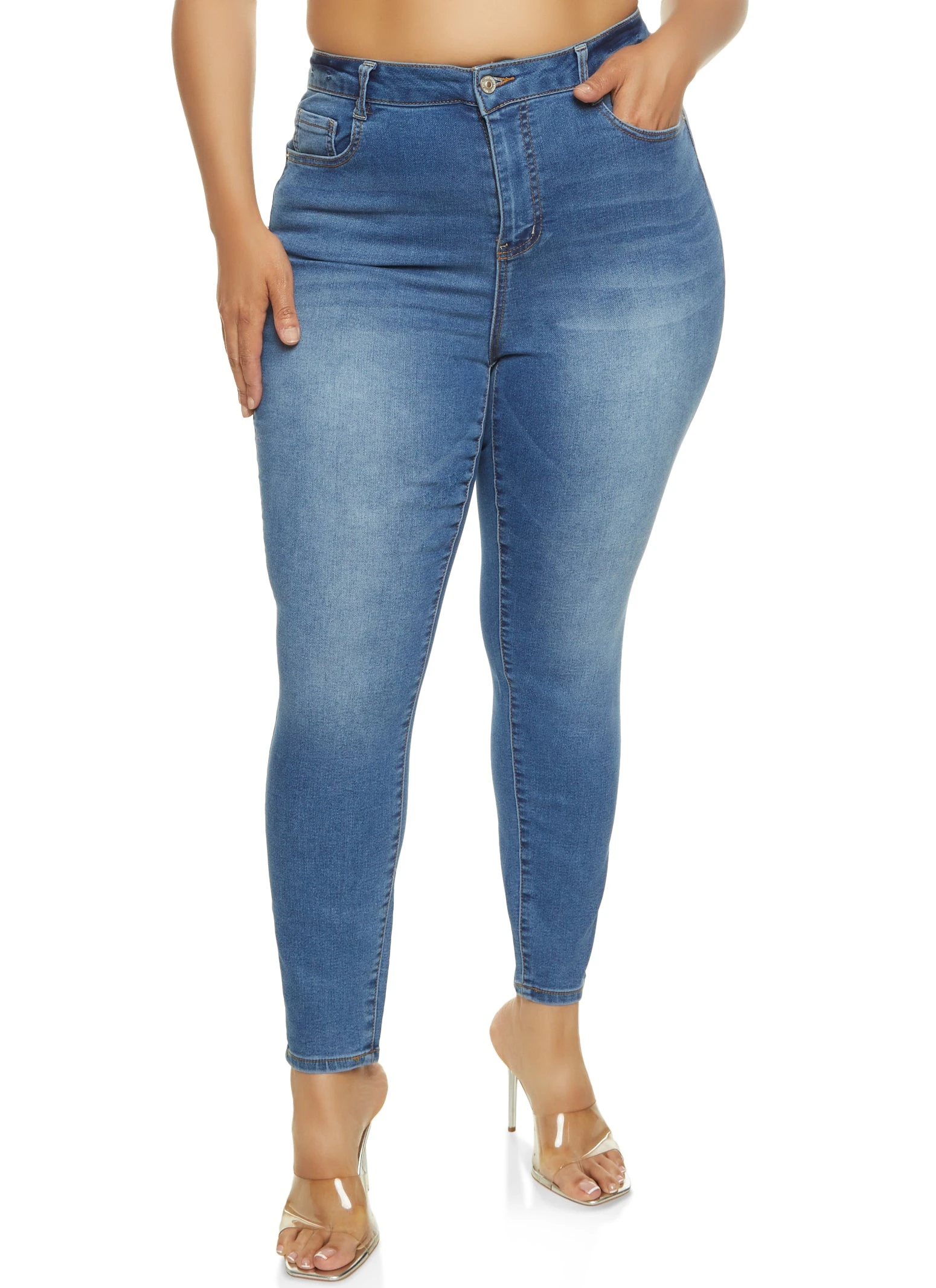 Plus Size WAX Whiskered High Waisted Skinny Jeans – MEDIUM WASH