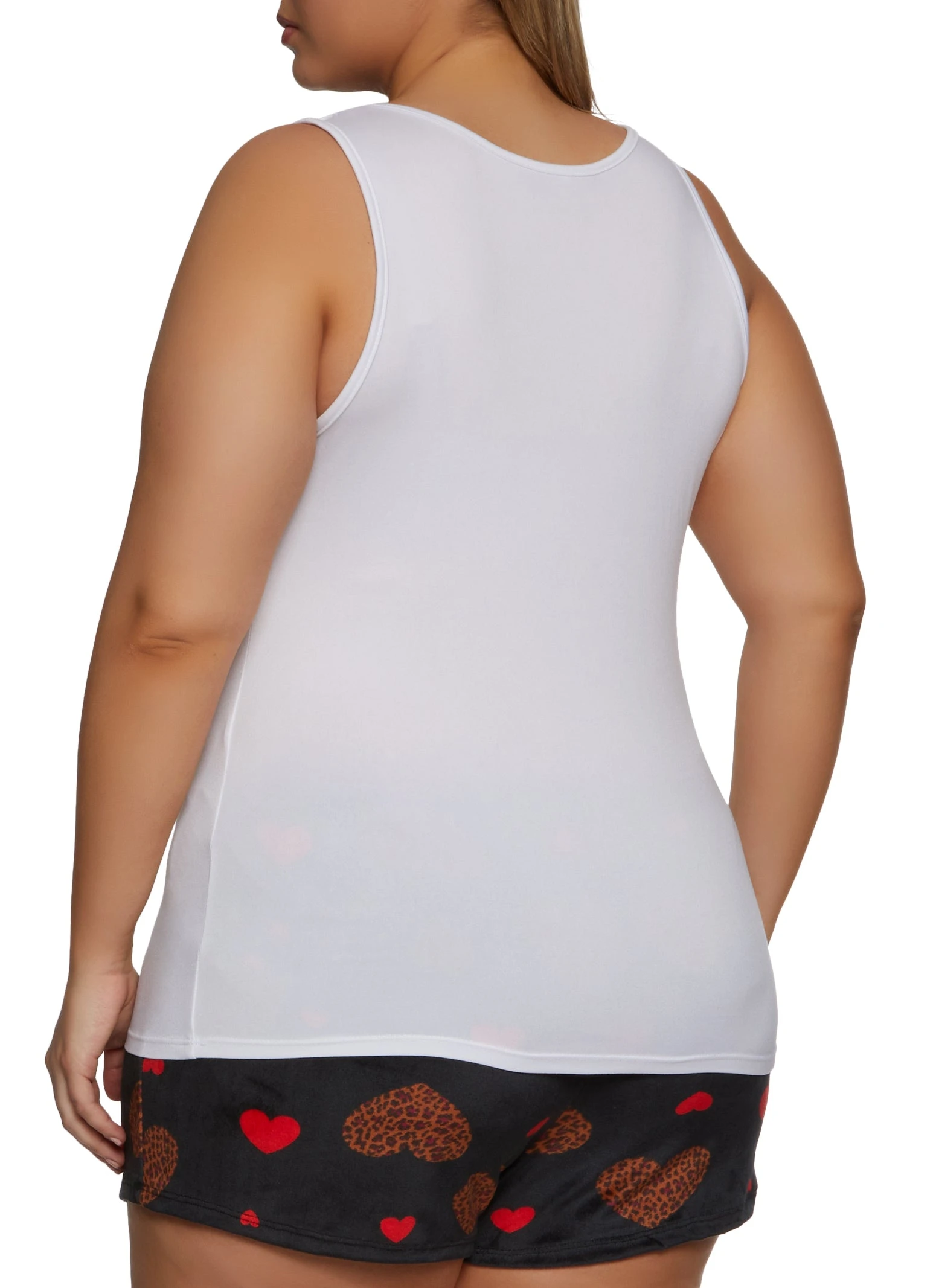 Plus Size Wild Love Pajama Tank Top and Shorts – WHITE