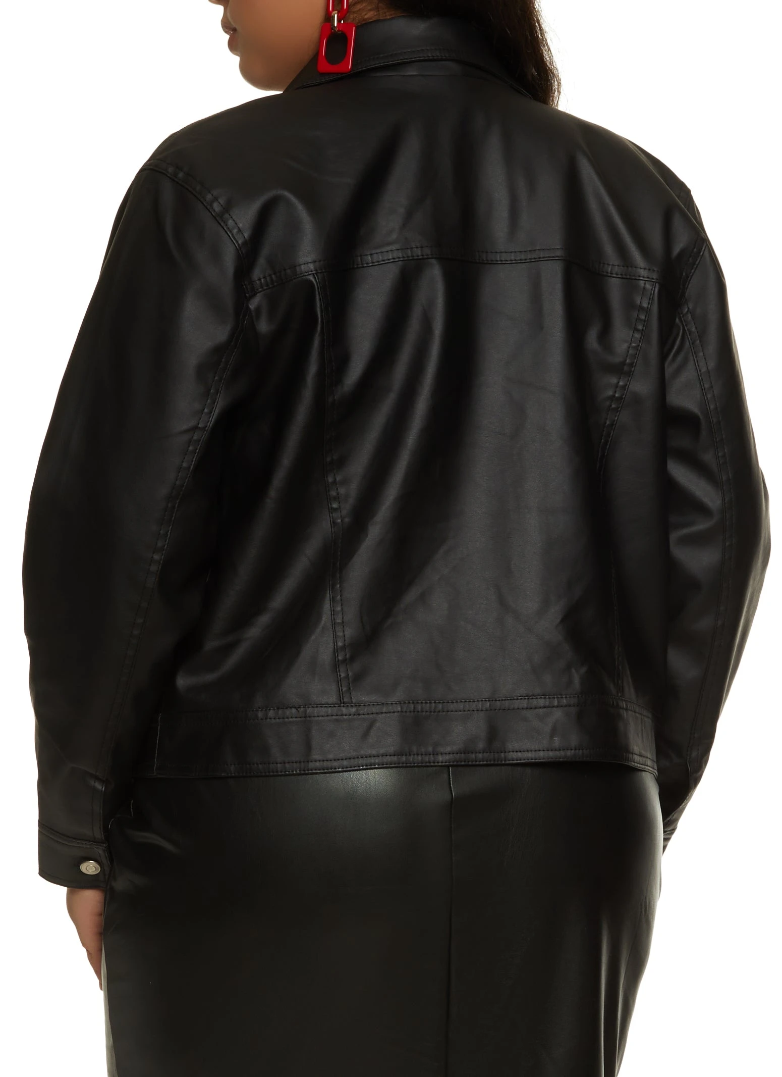 Plus Size Zip Front Faux Leather Jacket – BLACK