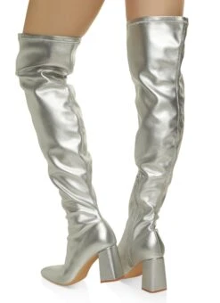Pointed Toe Over The Knee Boots – SILVER