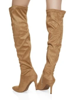 Pointed Toe Stiletto Over the Knee Boots – NATURAL
