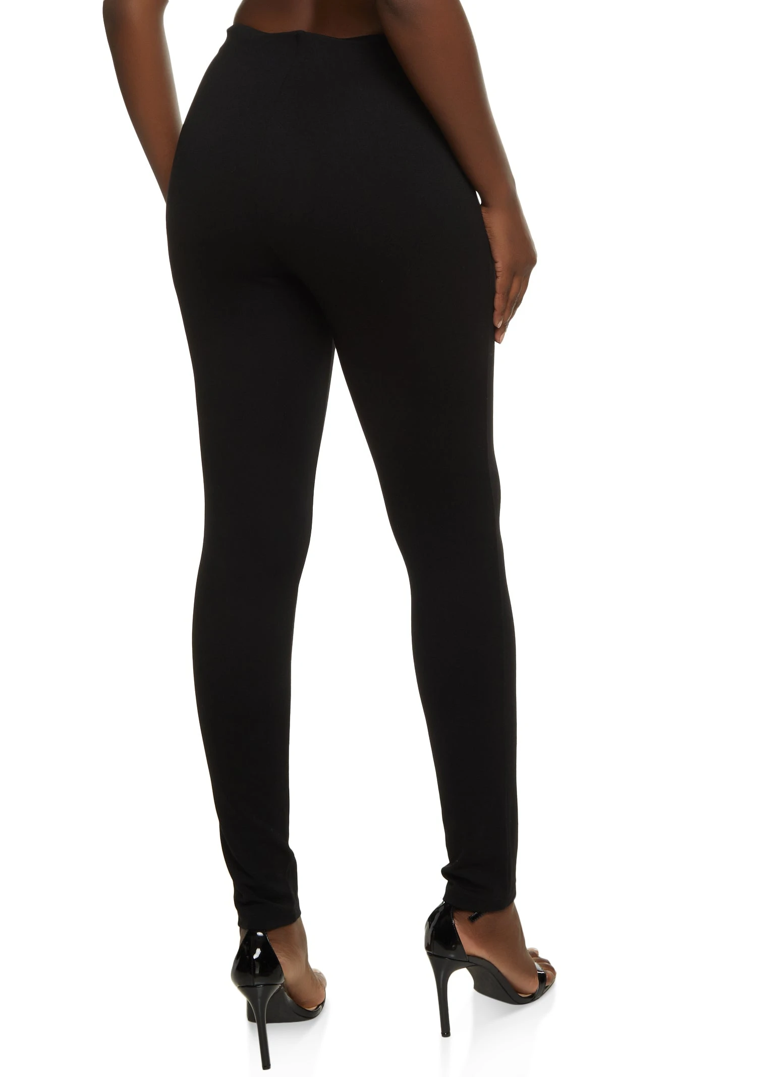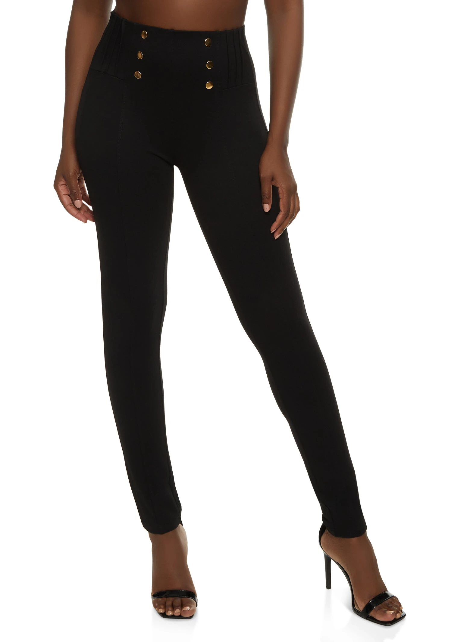 Ponte Button Detail Pull On High Waist Pants – BLACK