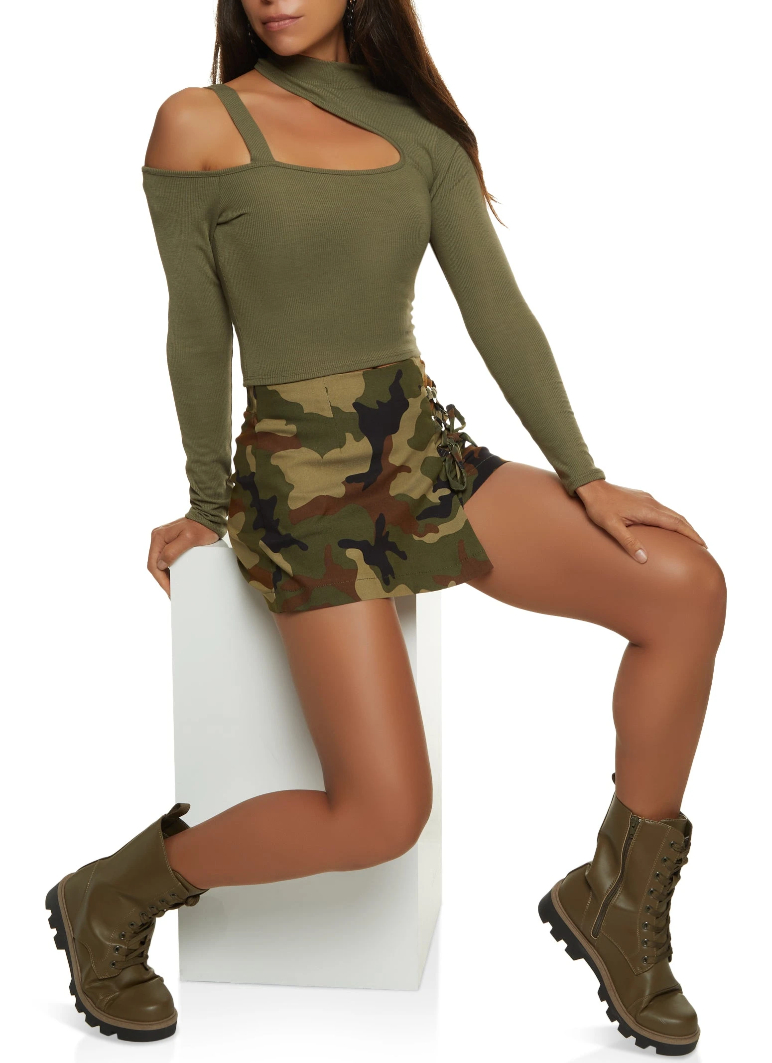 Printed Lace Up Skort – OLIVE