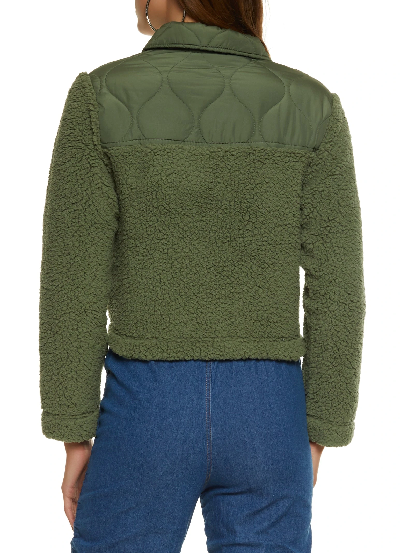 Quilted Sherpa Flap Pocket Jacket – OLIVE