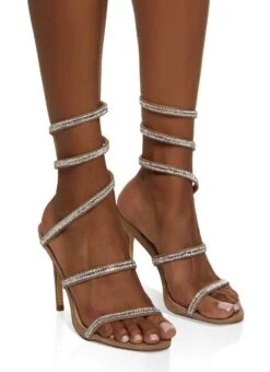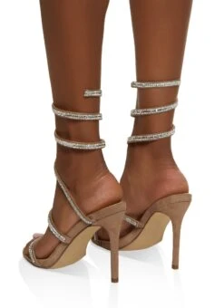 Rhinestone Ankle Wrap High Heel Sandals – NUDE