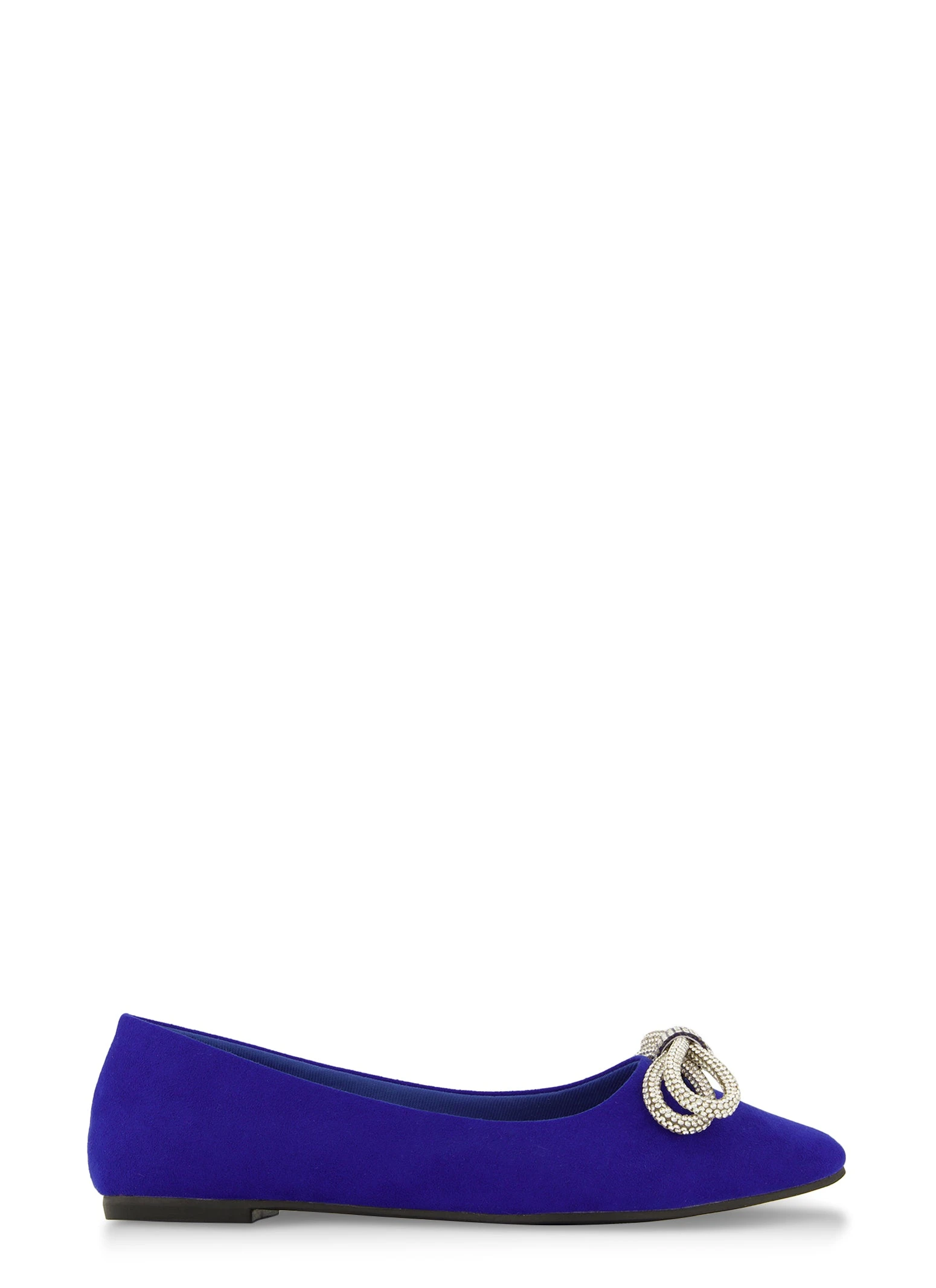 Rhinestone Bow Pointed Toe Flats – BLUE