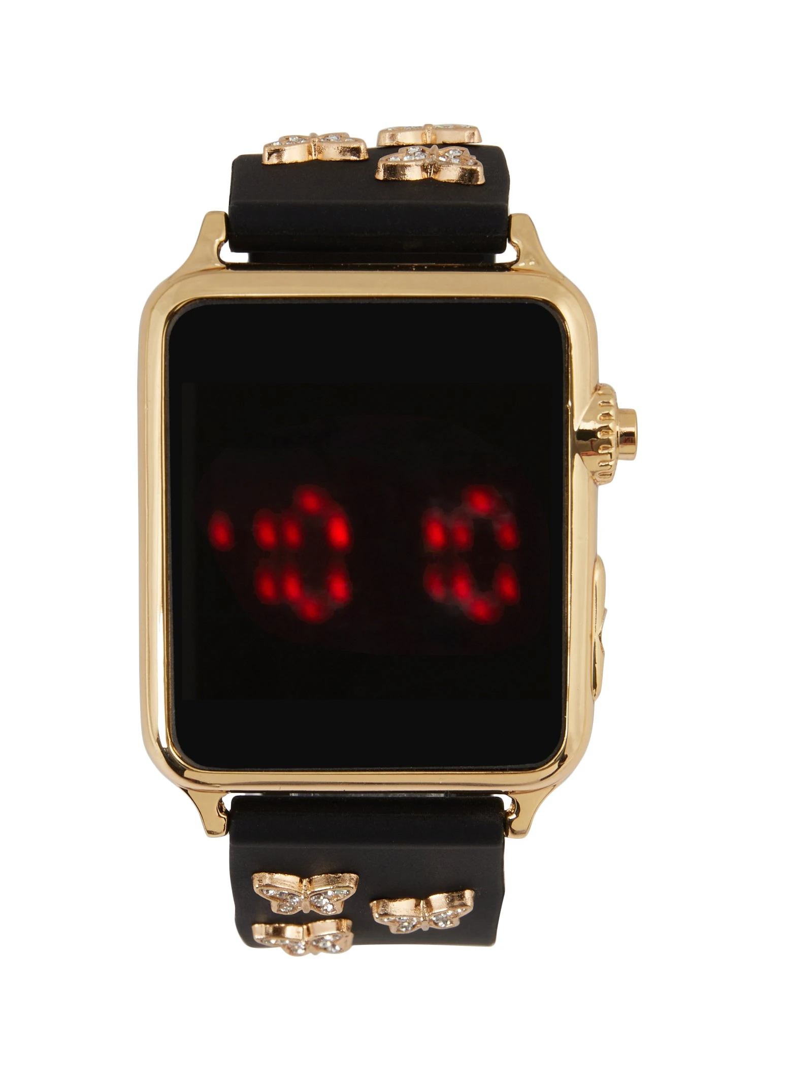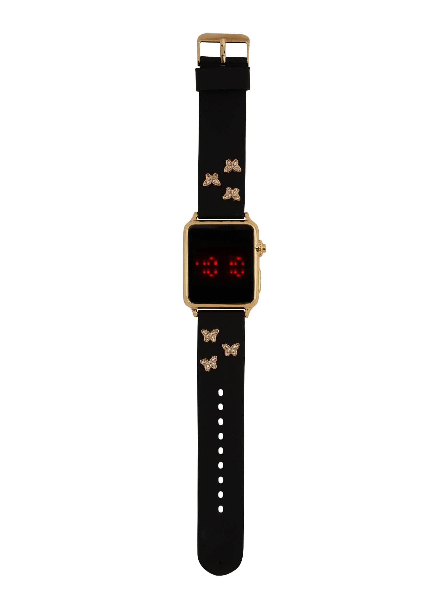 Rhinestone Butterfly Studded LED Watch – BLACK