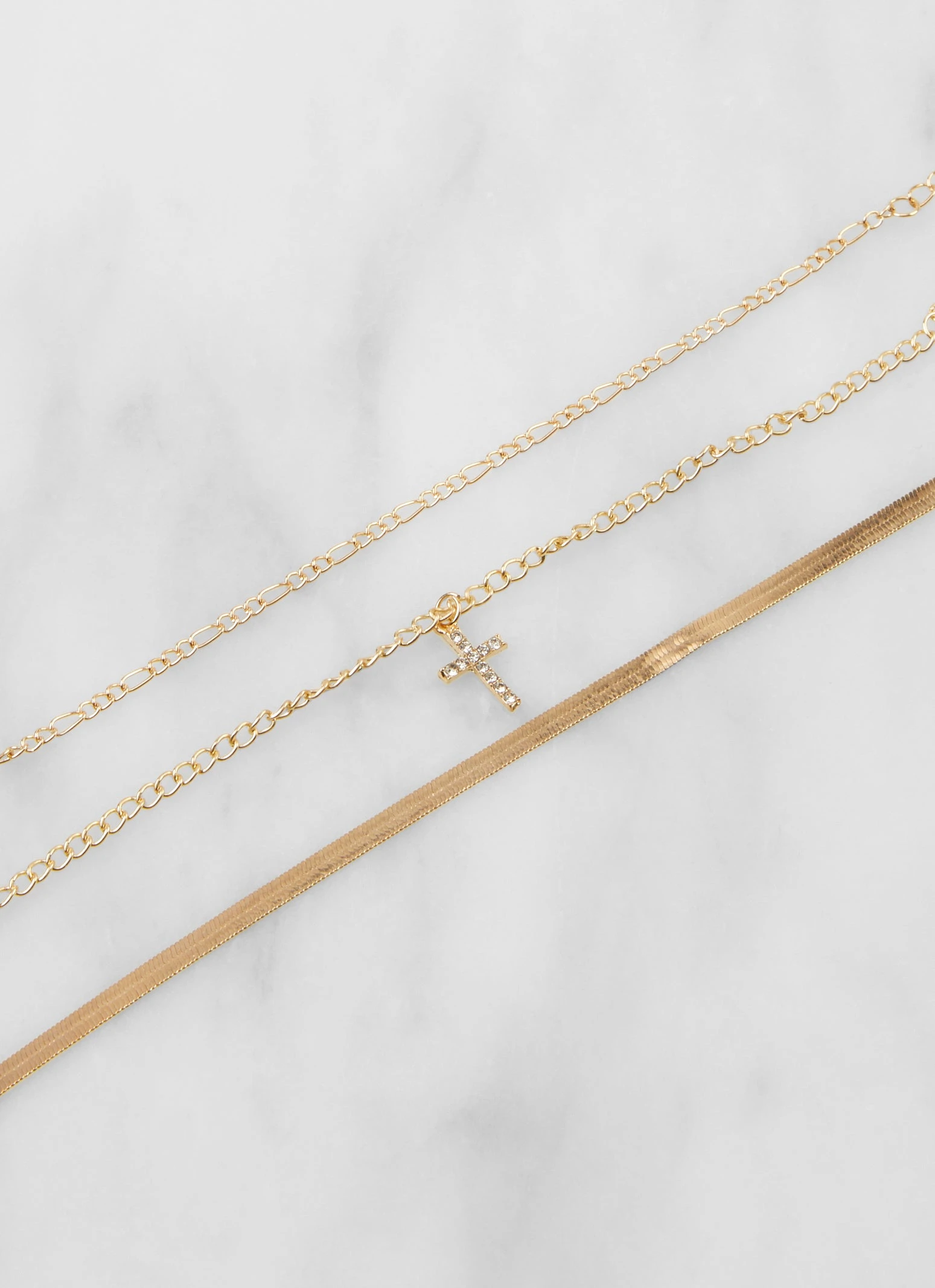 Rhinestone Cross Snake Chain Anklet Trio – GOLD