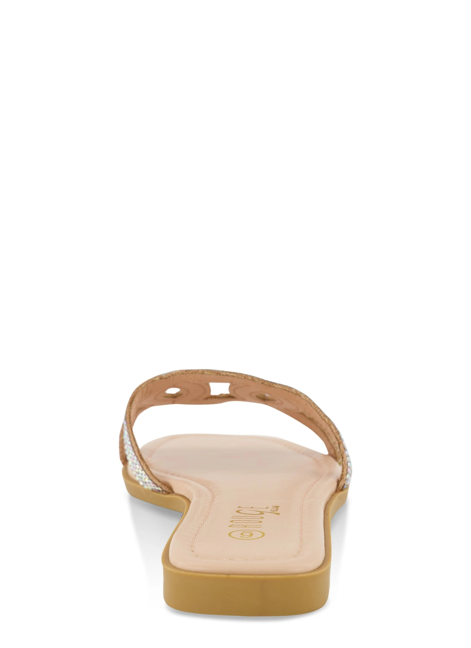 Rhinestone Cut Out Band Flat Sandals – NUDE