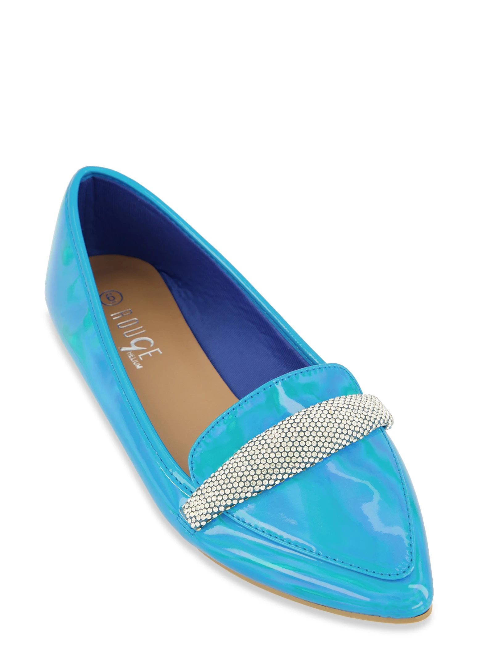 Rhinestone Detail Pointed Toe Flats – TURQUOISE