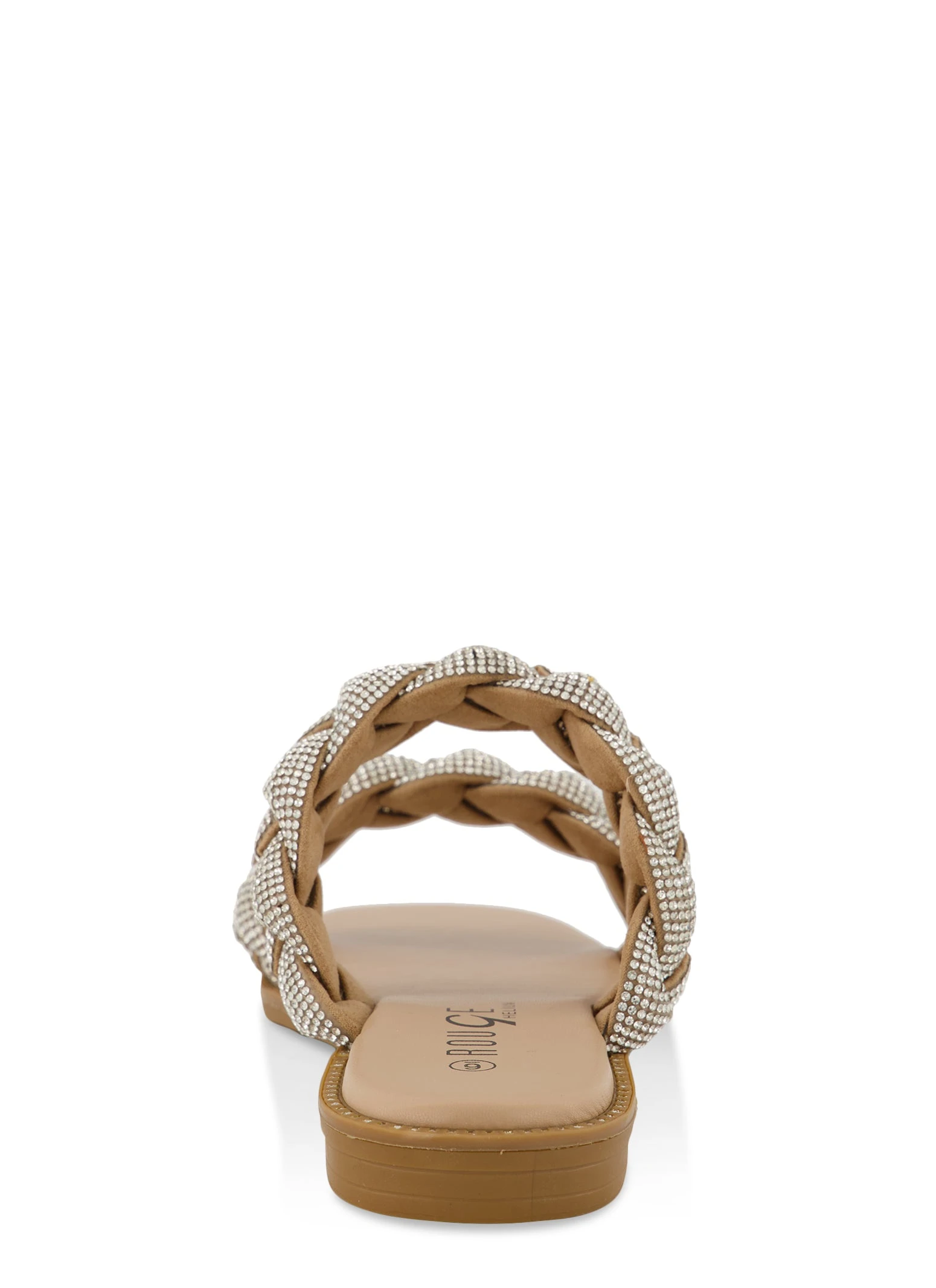 Rhinestone Double Braided Band Slide Sandals – SILVER