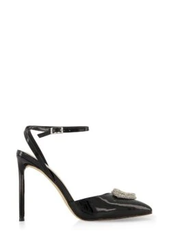 Rhinestone Heart Stiletto Ankle Strap Pumps – BLACK PATENT