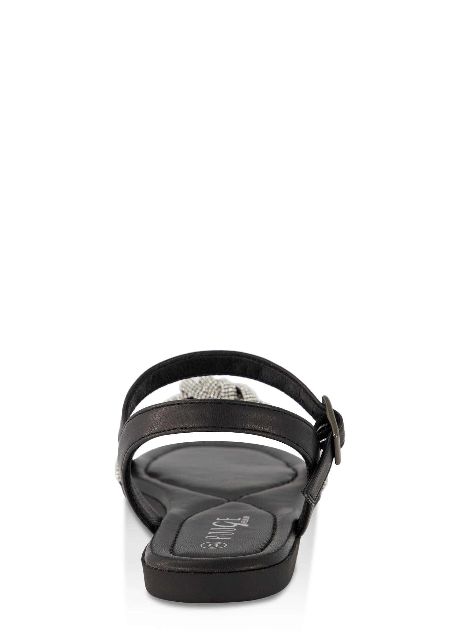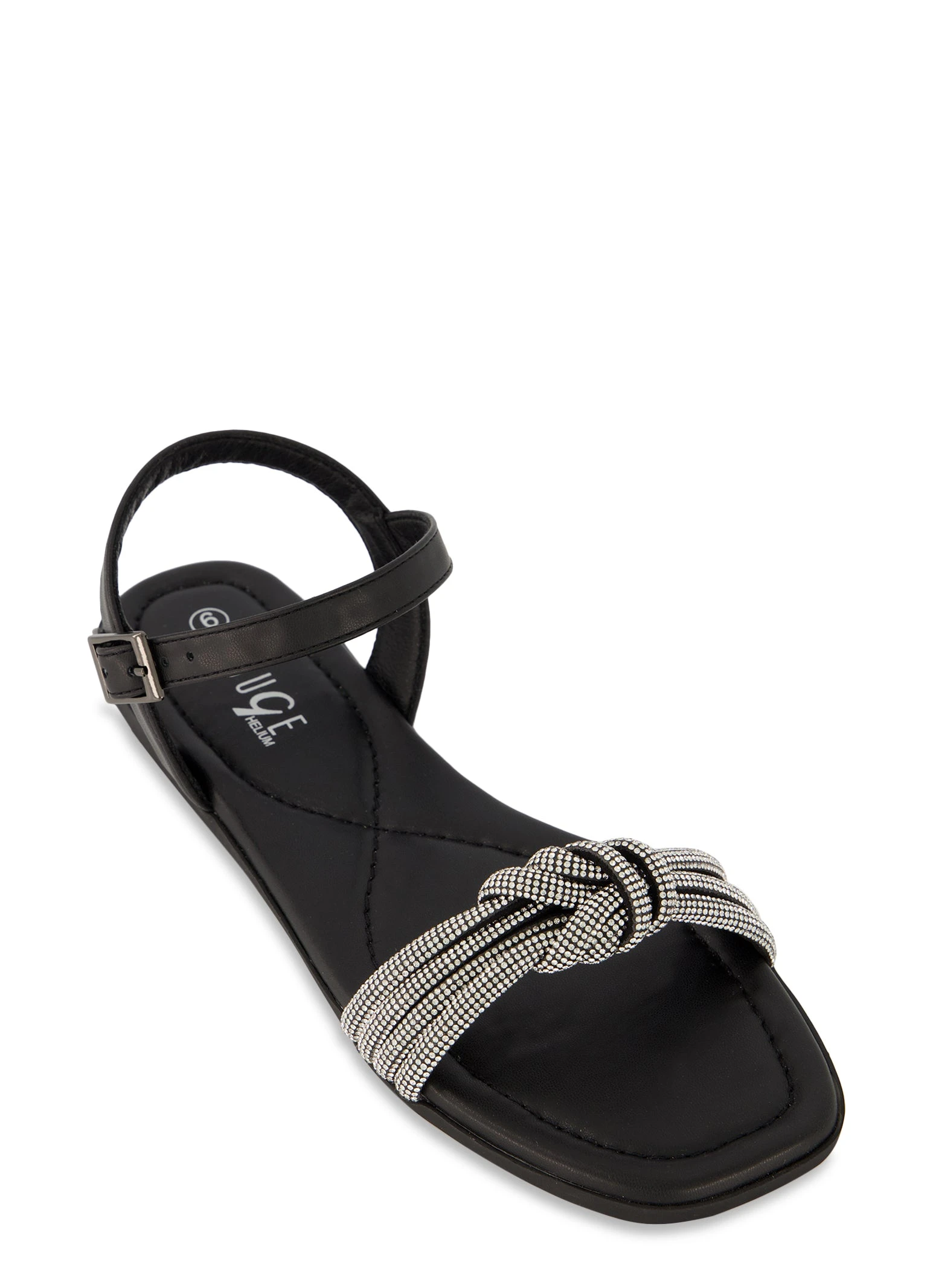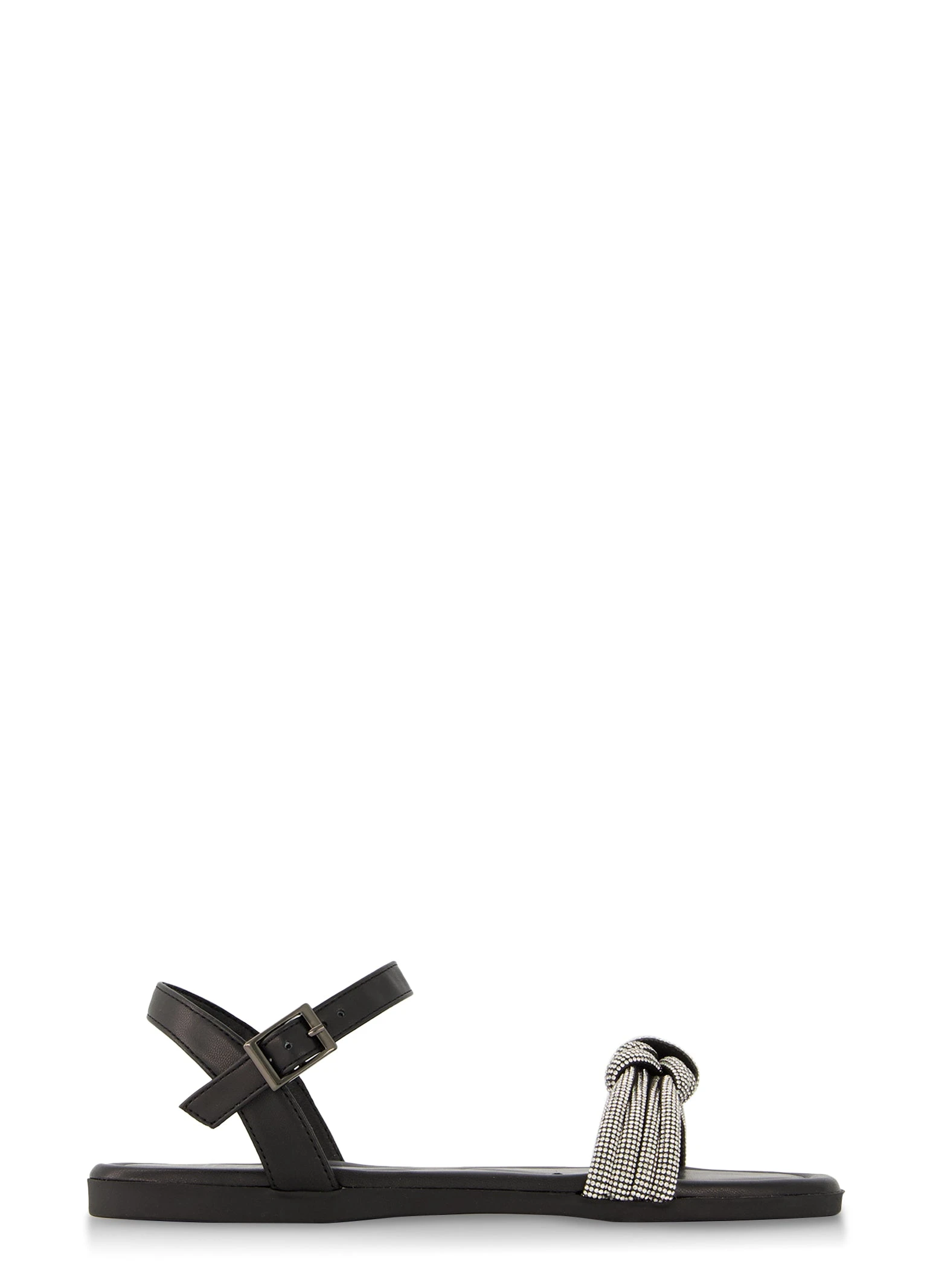 Rhinestone Knotted Band Flat Sandals – BLACK