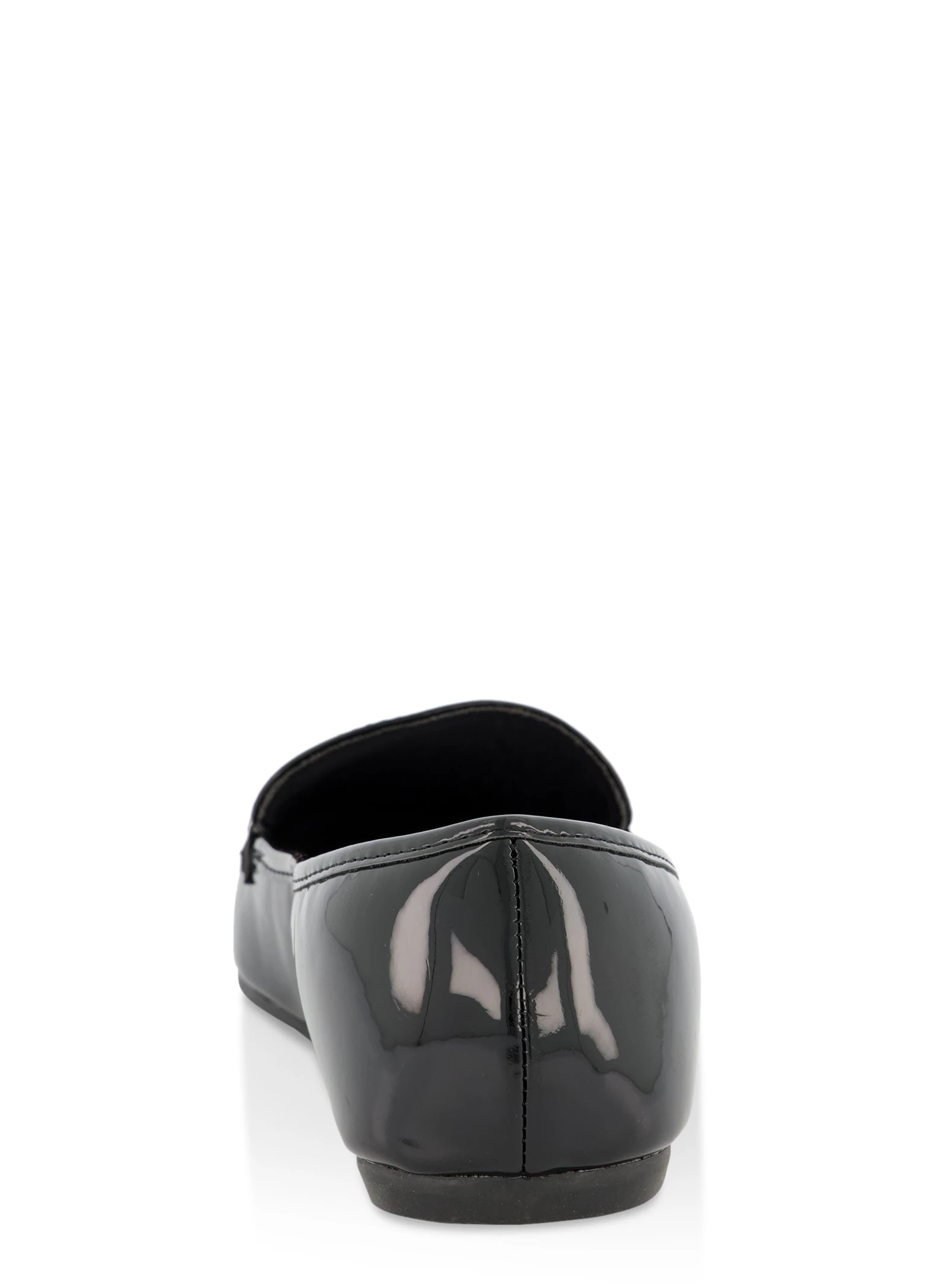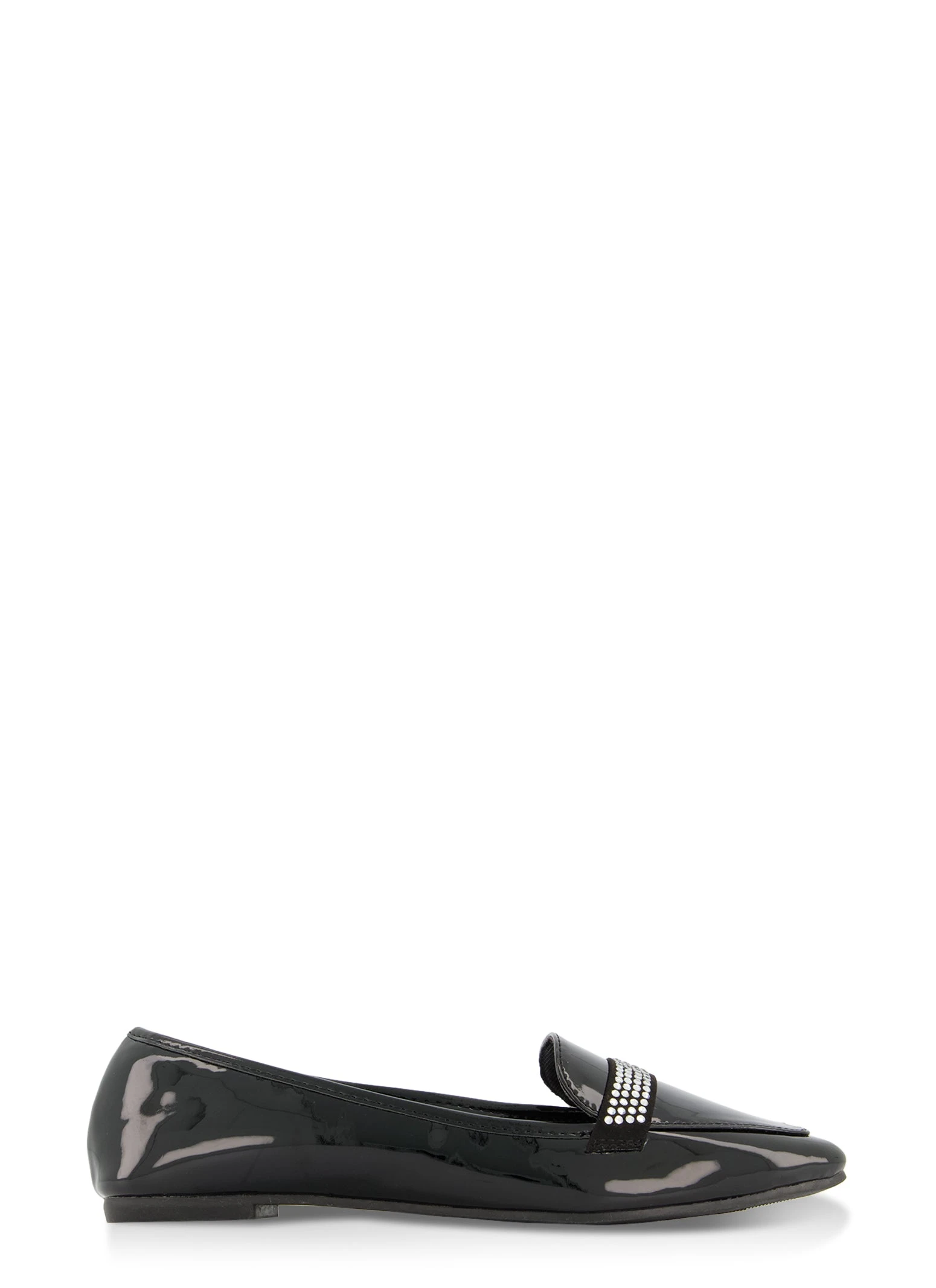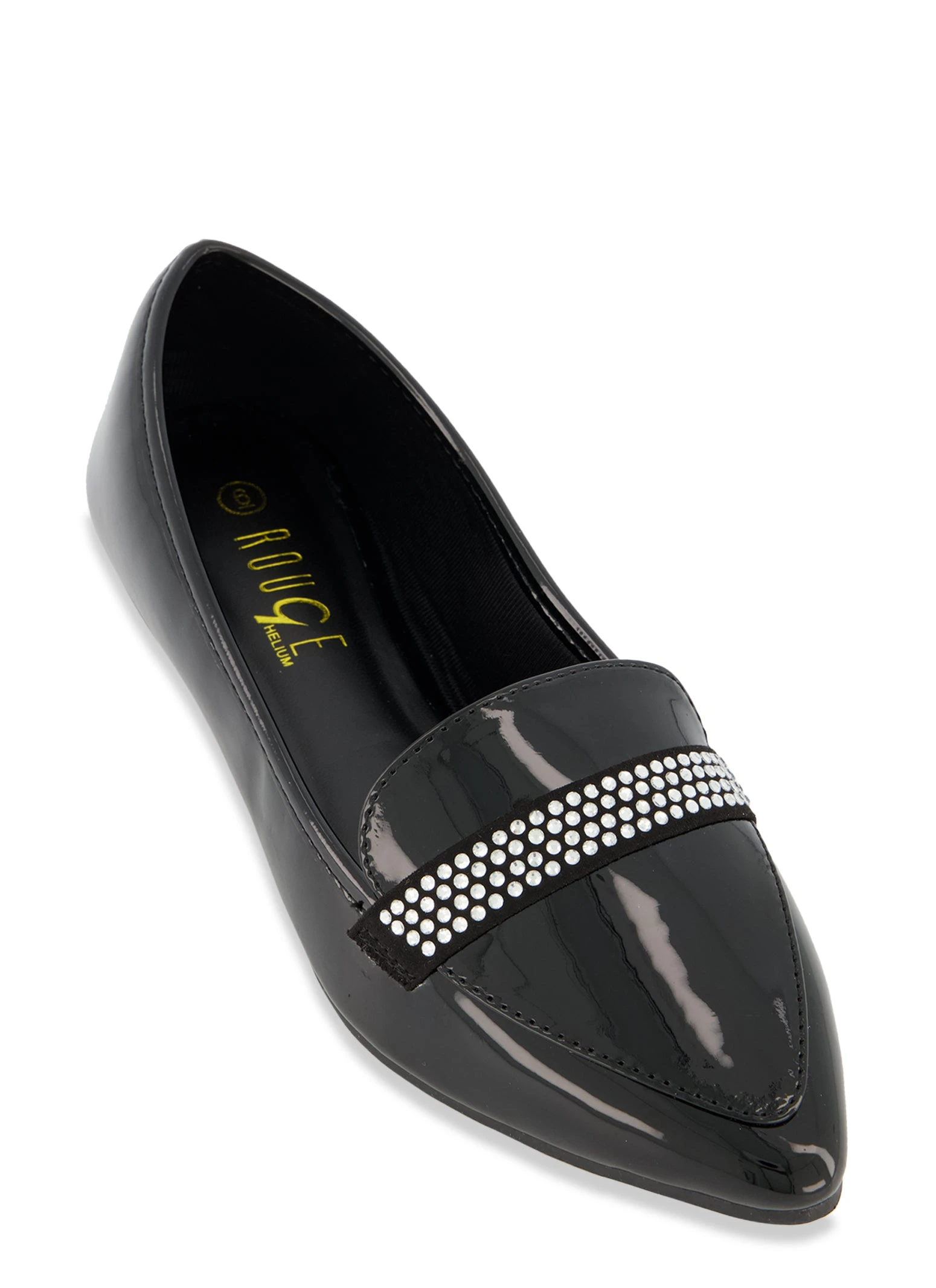 Rhinestone Pointed Toe Flats – BLACK PATENT