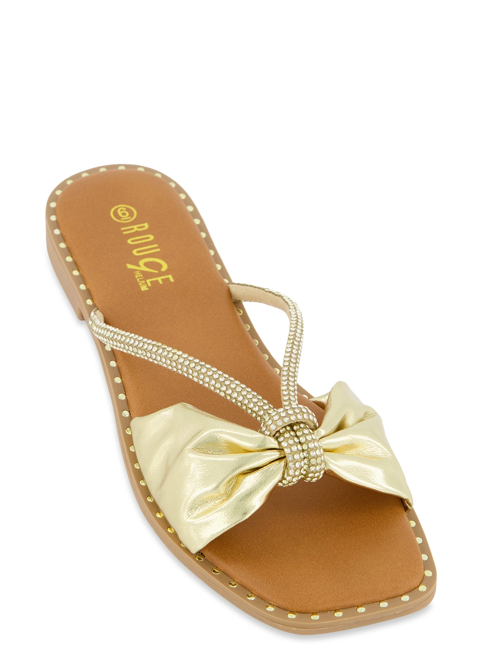 Rhinestone Strap Bow Slide Sandals – GOLD