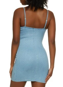 Rhinestone Studded Zip Front Denim Dress – LIGHT WASH